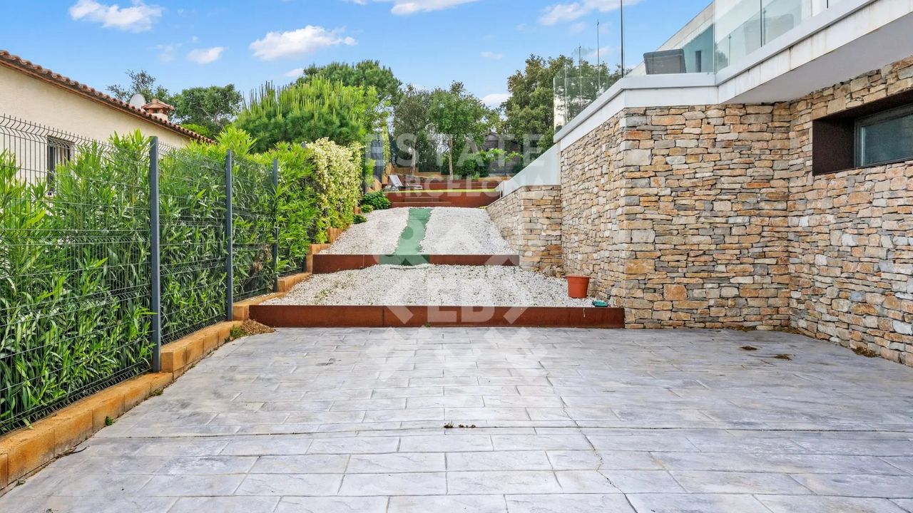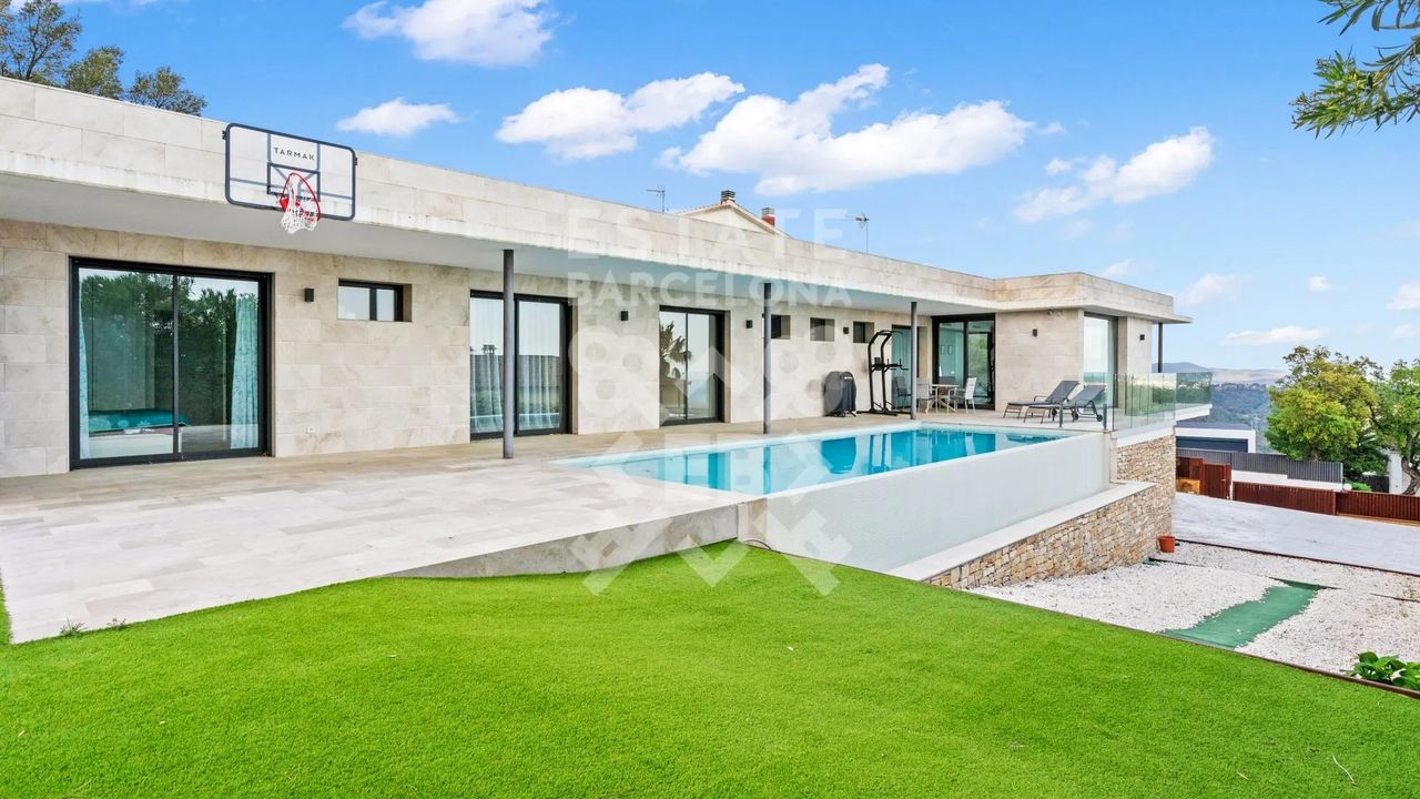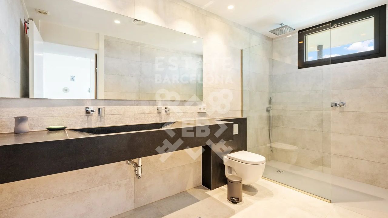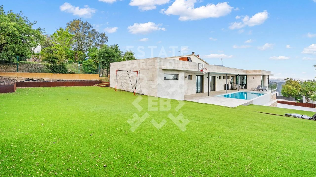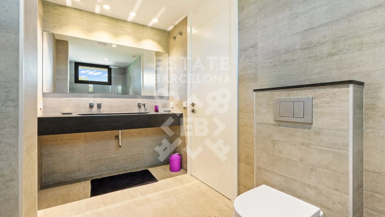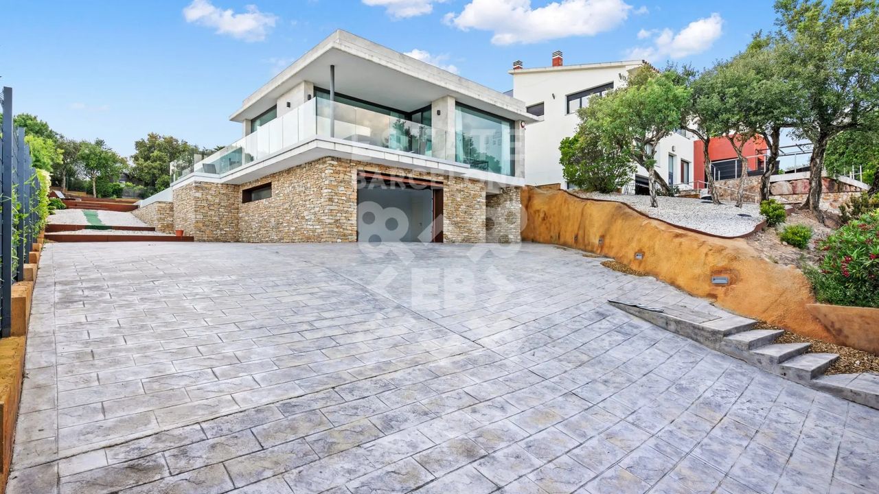 Она состоит из 440 м2, большого сада, 4 спален и 4 ванных комнат. Гараж на 3-4 машины, много естественного света и качественные материалы.