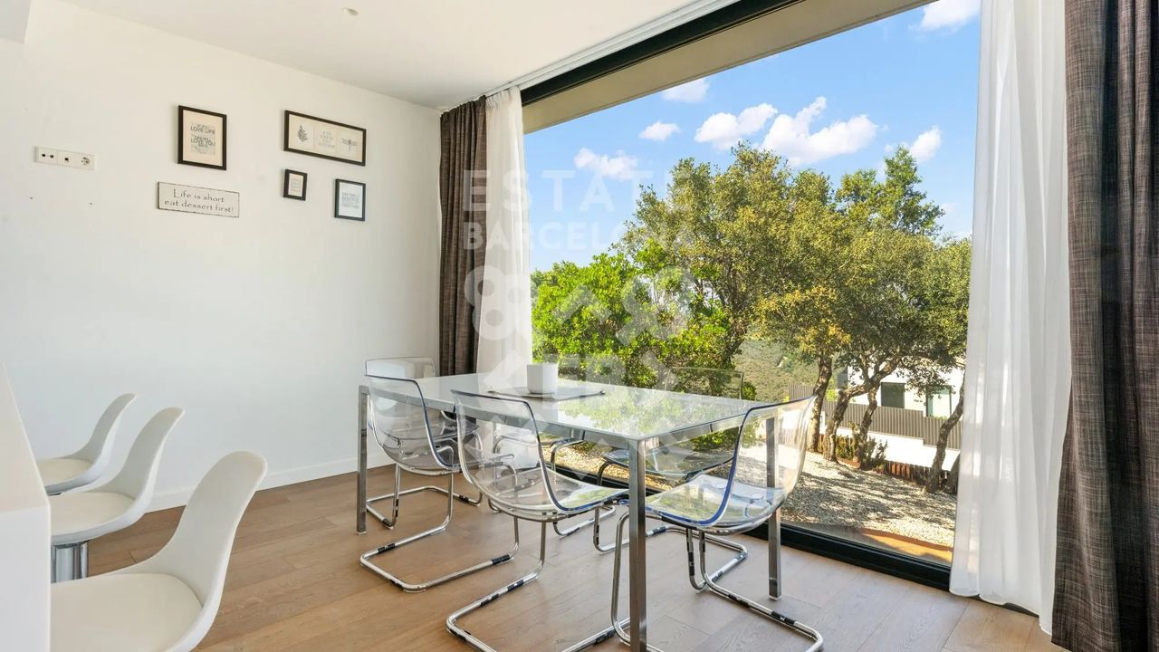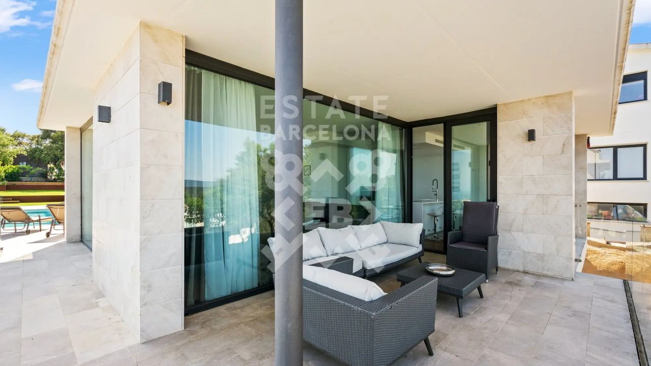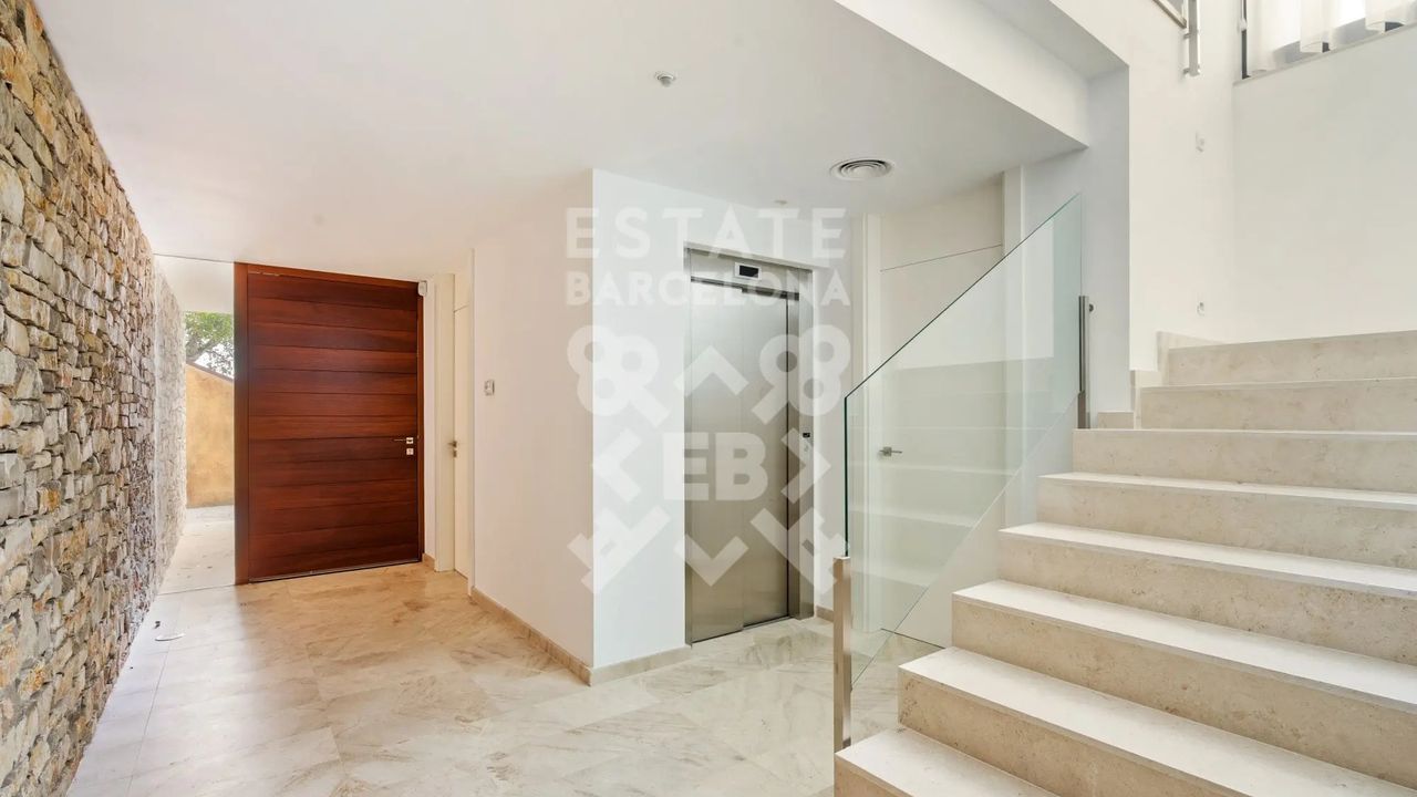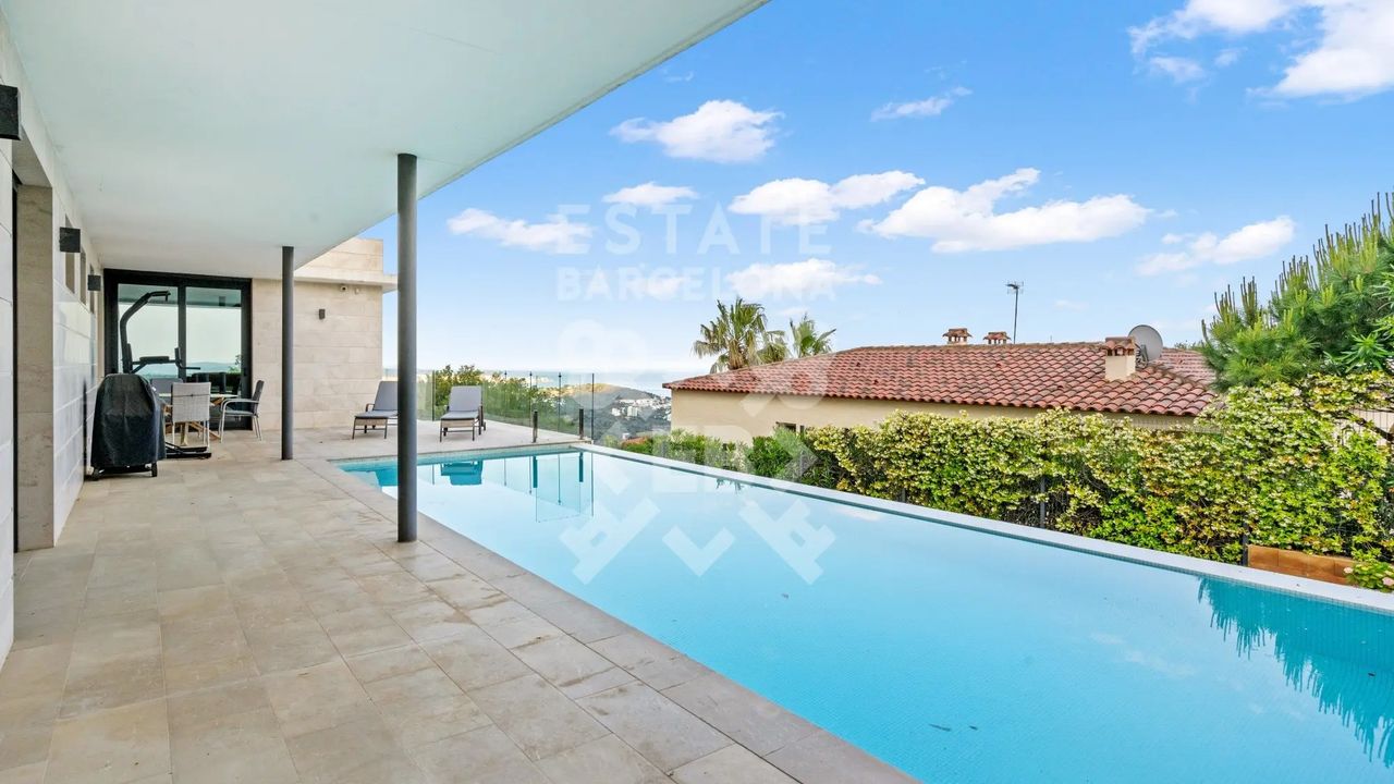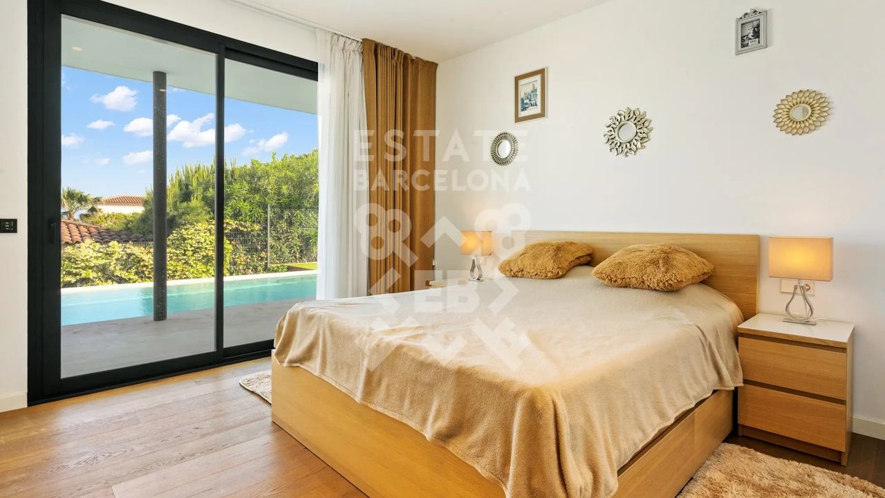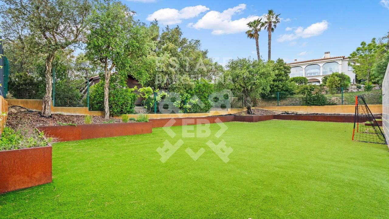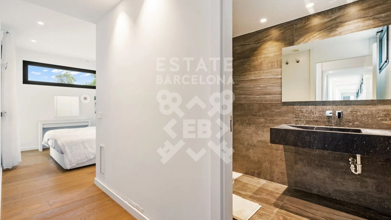 Она состоит из 440 м2, большого сада, 4 спален и 4 ванных комнат. Гараж на 3-4 машины, много естественного света и качественные материалы.
