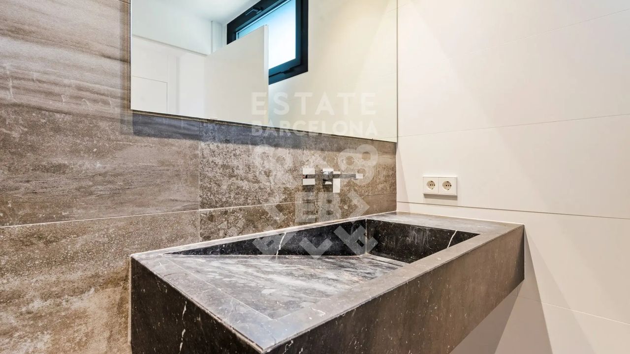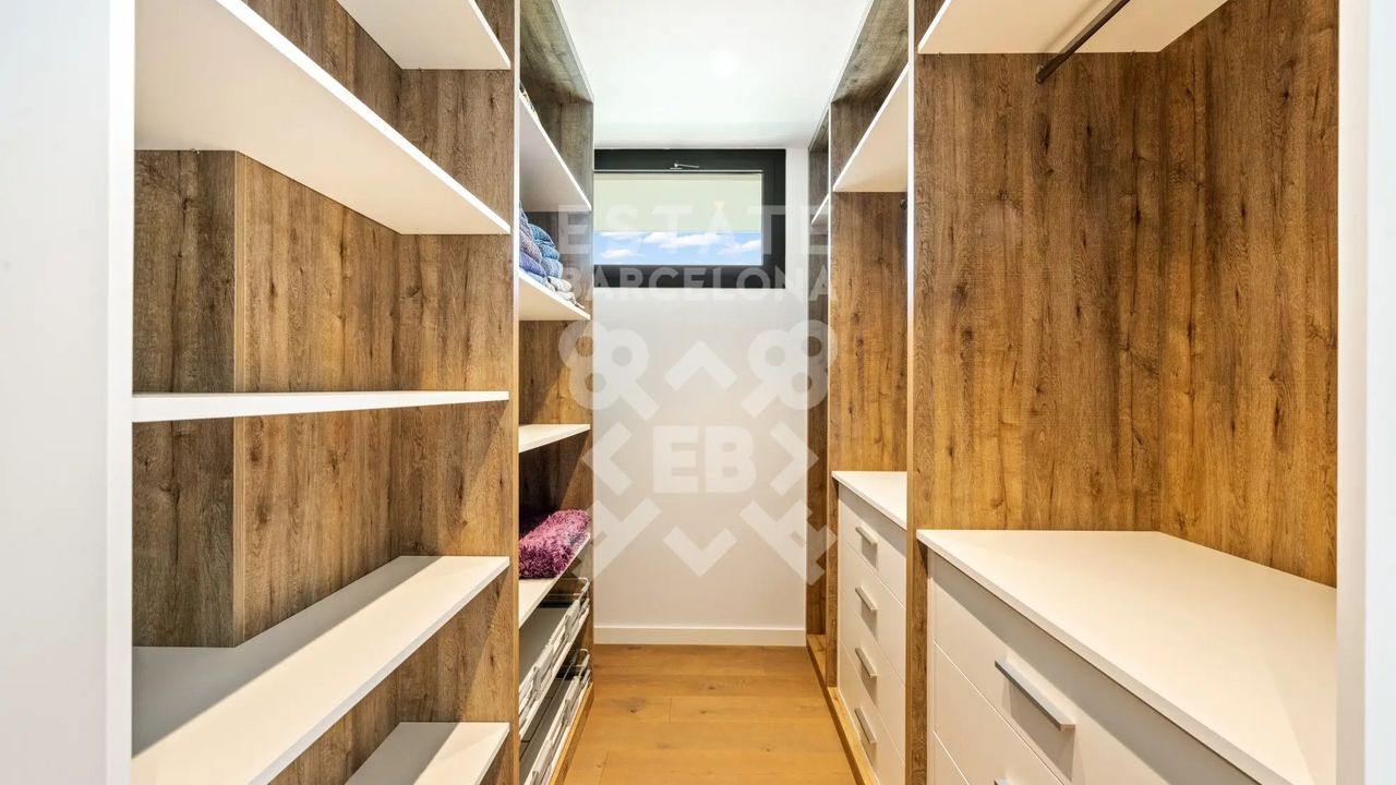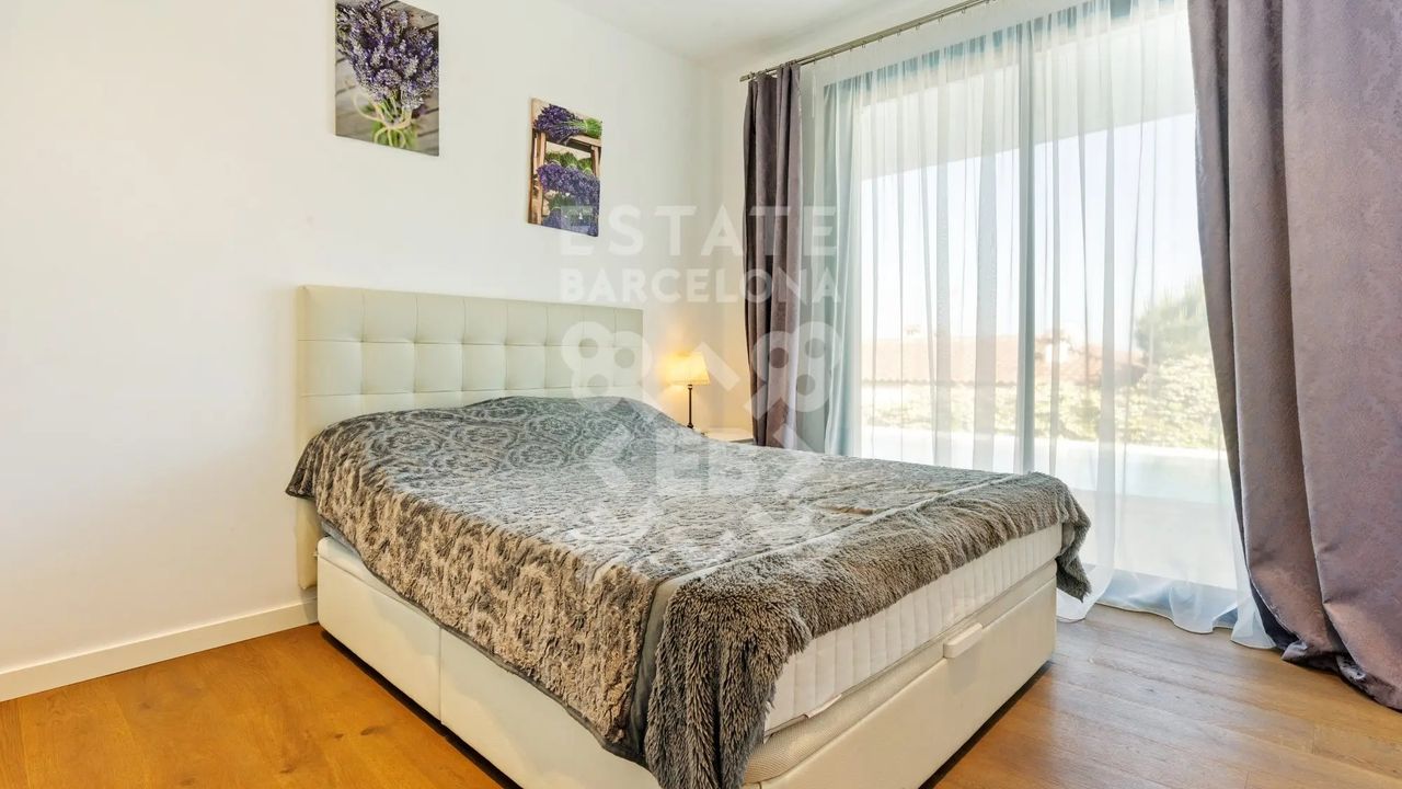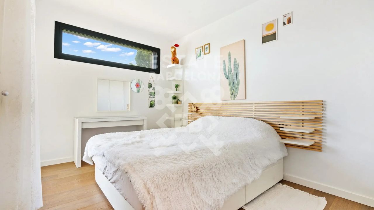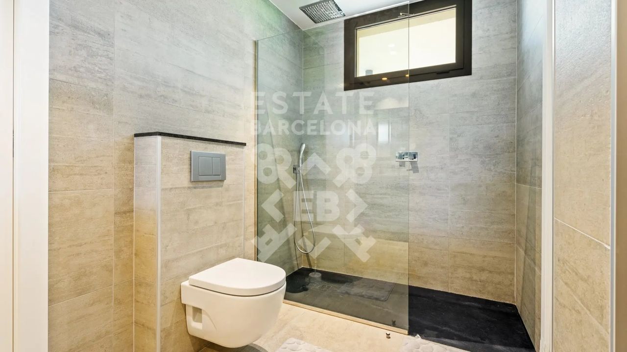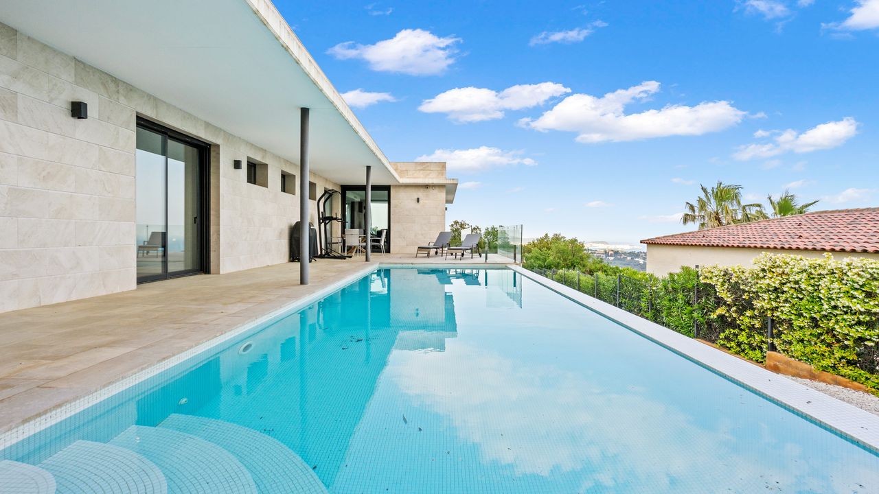 Она состоит из 440 м2, большого сада, 4 спален и 4 ванных комнат. Гараж на 3-4 машины, много естественного света и качественные материалы.