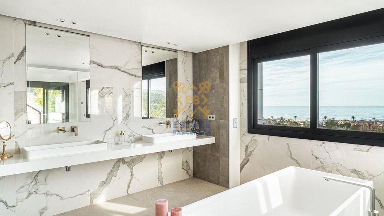 Новый дом с панорамным видом на море в городе Кастельдефельс, Байамарский район. Расстояние до центра Барселоны составляет 25 км, расстояние до моря составляет около 2 км. Общая площадь 678 кв.м Дом построен на 4 этажах. В доме 6 спален, 6 ванных комнат, просторная гостиная с панорамными окнами, отдельная полностью оборудованная кухня, прачечная, кладовая, гараж. В доме есть красивая территория с садом и бассейном, который предлагает прекрасные виды на море. Кондиционер, система отопления. Отделочные материалы и качественная бытовая техника.