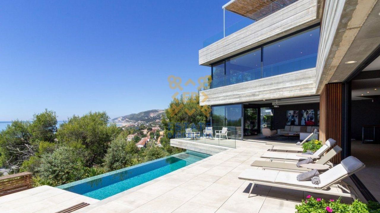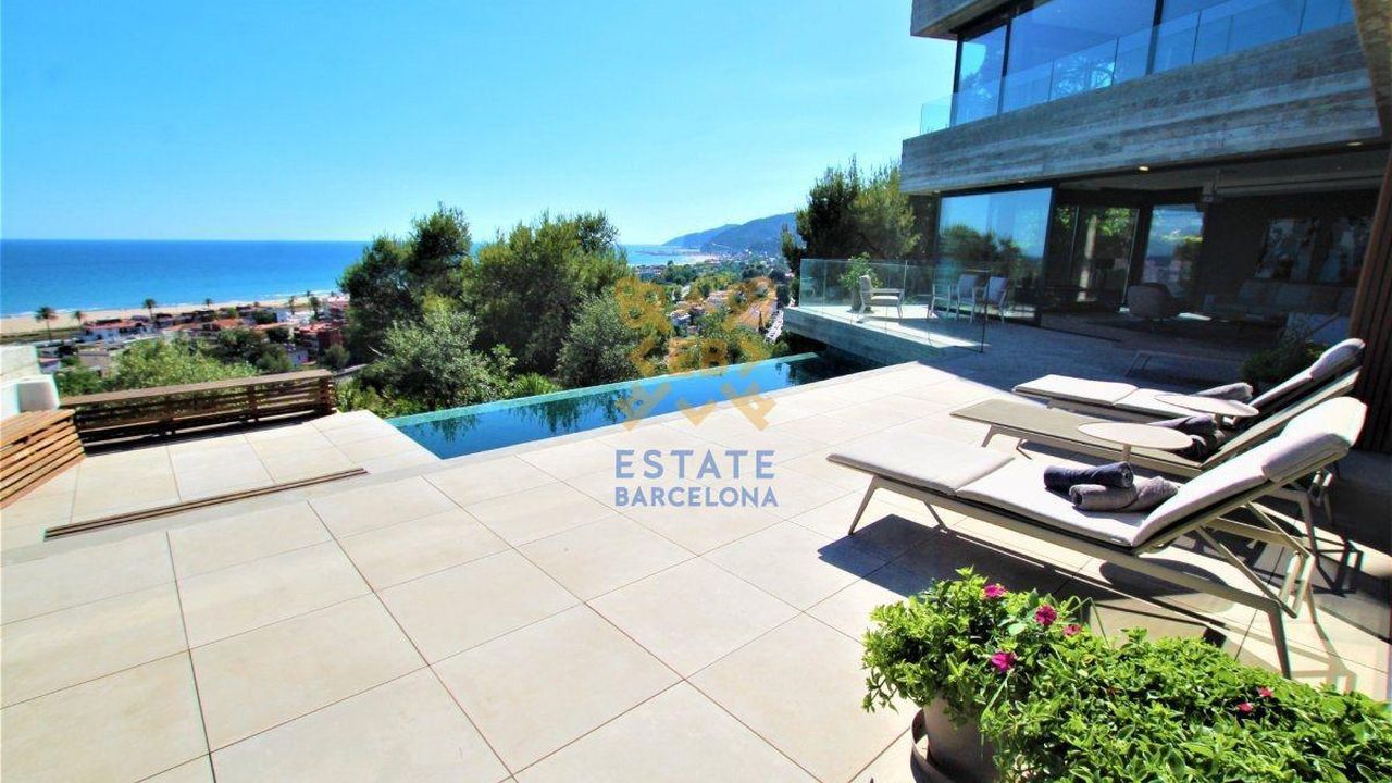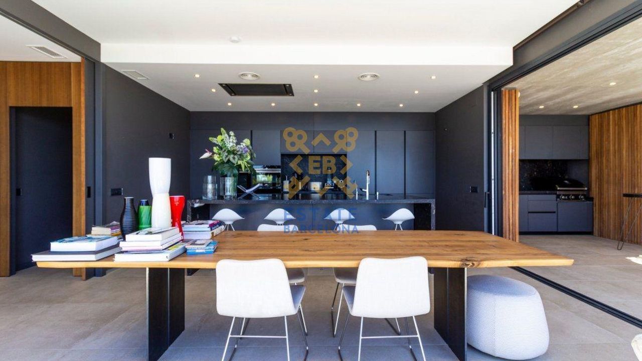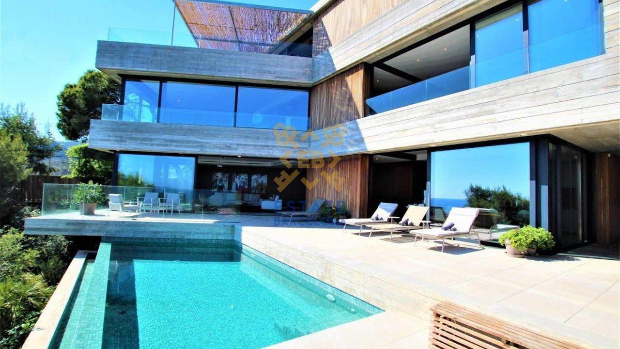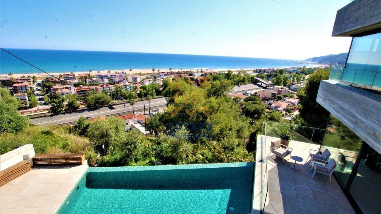 Современный дом с панорамным видом на море в городе Кастельдефельс, Байамарский район. Расстояние до центра Барселоны составляет 25 км, расстояние до моря составляет около 2 км. Общая площадь 547 кв.м на территории 944 кв.м Дом построен на 4 уровнях. В доме 5 спален, 6 ванных комнат, просторная гостиная с выходом на террасу, отдельная кухня, прачечная, кладовая, гараж на 2 машины. В доме есть красивая территория с садом и бассейном, который предлагает прекрасные виды на море. Кондиционер, система отопления. Отделочные материалы и качественная бытовая техника.