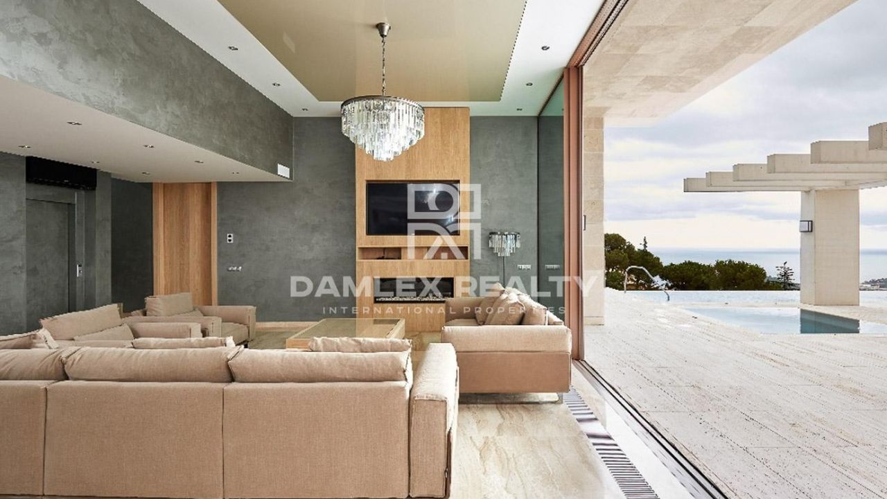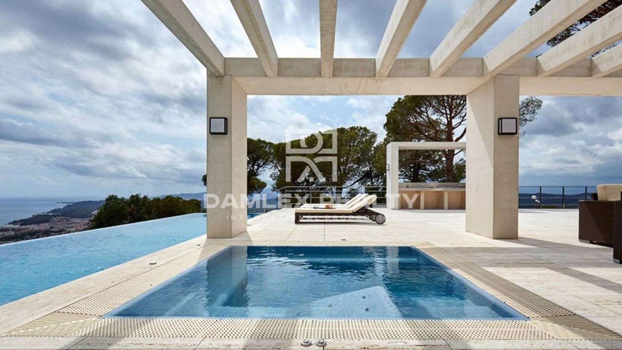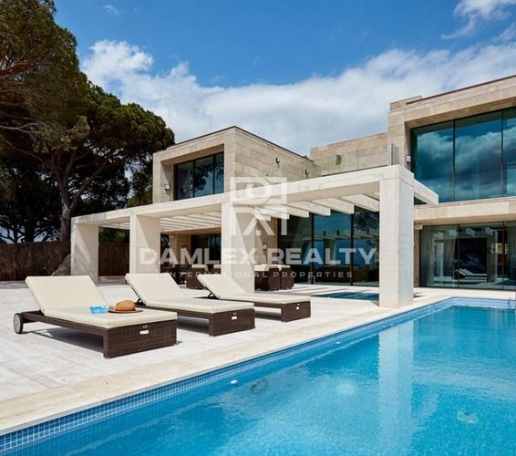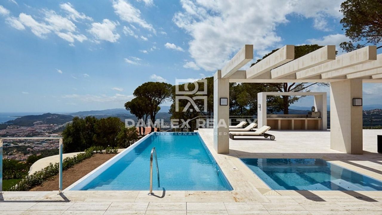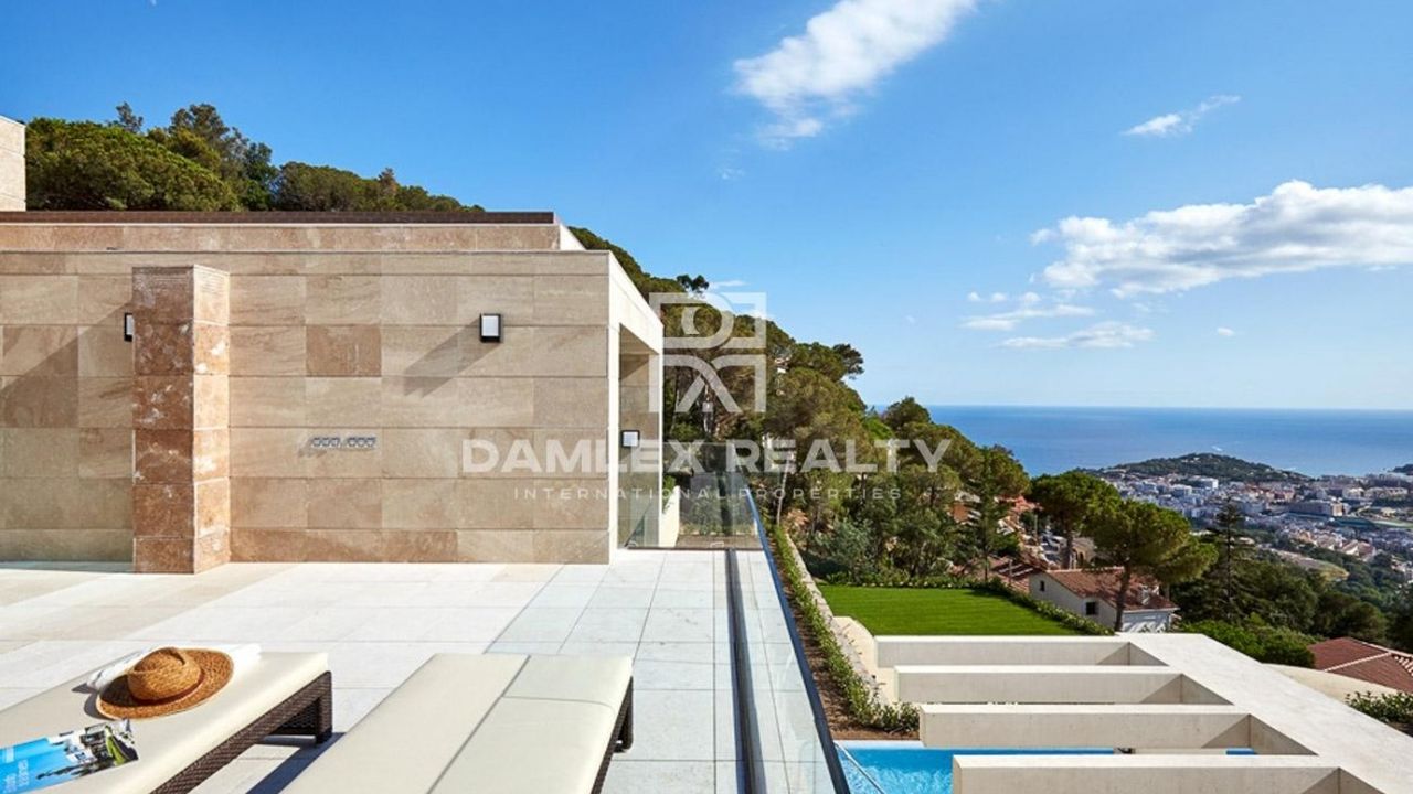 Новый дом в стиле модерн расположен в урбанизации Roca Grossa, в городе Lloret de mar. Участок 1433 м2, дом 618 м2. Имеется газ, центральное водоснабжение, электричество, центральная канализация,, отопление, кондиционирование.Дом оборудован лифтом Orona (4 этажа- 2 жилых, подвал и крыша). В доме 5 спален из них 3 сьюта имеют вид на море и горы, 2 спальни на улицу. В подвале сауна, бодега. В доме установлены: тв, интернет, пожарная сигнализация, охранные система, видеонаблюдение. В доме: свет- Timothy Oulton, кухонная техника Miele, сантехника Duravit, паркет, двери, встроенная мебель- архитектурное бюро Llorens, мягкая мебель Roche bobois.Гараж на две машины оснащен автоматическими воротами, парковка на 4-6 автомобилей. Бассейн с переливом и видом на море, оснащен противотоком. Очищение УФ лучами+ система очистки. Джакузи 4-6 человек. Бассейн и джакузи оснащены массажными форсунками и декоративным освещением. Зона bbq. Ровная площадка с видом на море и горы. Летняя кухня оборудована: газовой плитой, тапаньяки, вок, раковиной (горячая и холодная вода), профессиональная печь Hosper. Освещение, музыкальные динамики, уличная мебель Skyline.Территория сада разделена на 4 террасы, с каждого уровня есть вид на море. Одна из террас отдана под газон, другая- фруктовый сад. В саду высажены декоративные деревья, кусты, цветы, розарий. Сад оборудован автополивом, декоративной подсветкой. Есть профессиональная площадка для игры в петанк. Уровни соединены рампой, что дает возможность легкого передвижения по территории, что особенно важно для пожилых и инвалидов, маленьких детей.Эта роскошная вилла построена в 2016 году. Большой участок, на котором построена вилла, находится на возвышенности, что позволяет вилле иметь потрясающий вид на море и город Льорет де Мар. На нижнем этаже расположен салон-столовая с двумя большими зонами: зоной отдыха с камином и столовой зоной, где расположен большой стол и интегрированная кухня со встроенной мебелью из натурального дерева, сделанной под заказ.Пол выложен натуральным камнем. Разноуровневый потолок со встроенной подсветкой. Зона камина и телевизионная ниша встроены в мебель из натурального дерева. Мебель марки Roche Boboi. Внизу так же расположена большая спальня с гардеробной и ванной комнатой, кабинет, гостевой туалет и прачечная зона. Из салона, кухни и спальни есть выход на большие террасы, к зоне с бассейном и зоне барбекю. На втором этаже расположены 2 спальни, каждая из которых имеет собственную ванную комнату и комнаты-студии и небольшие террасы. Вилла имеет большой гараж площадью 46 м2.