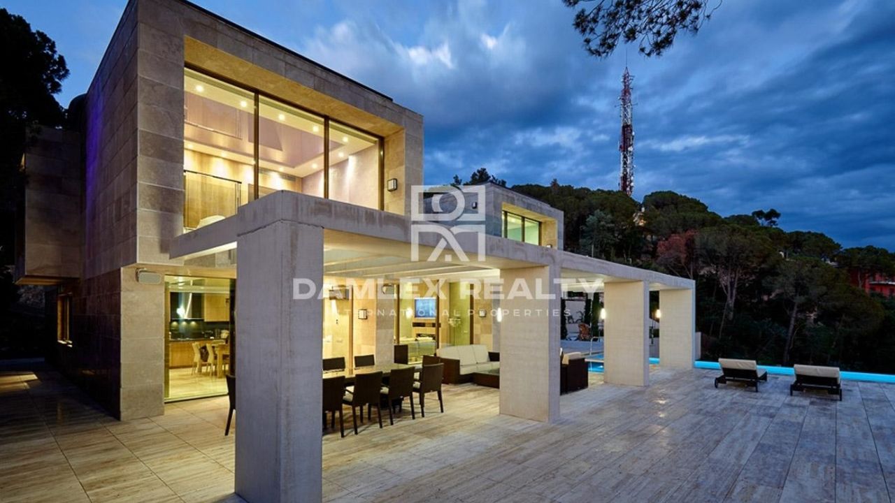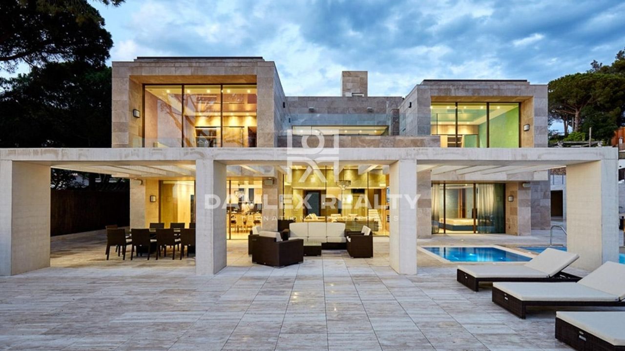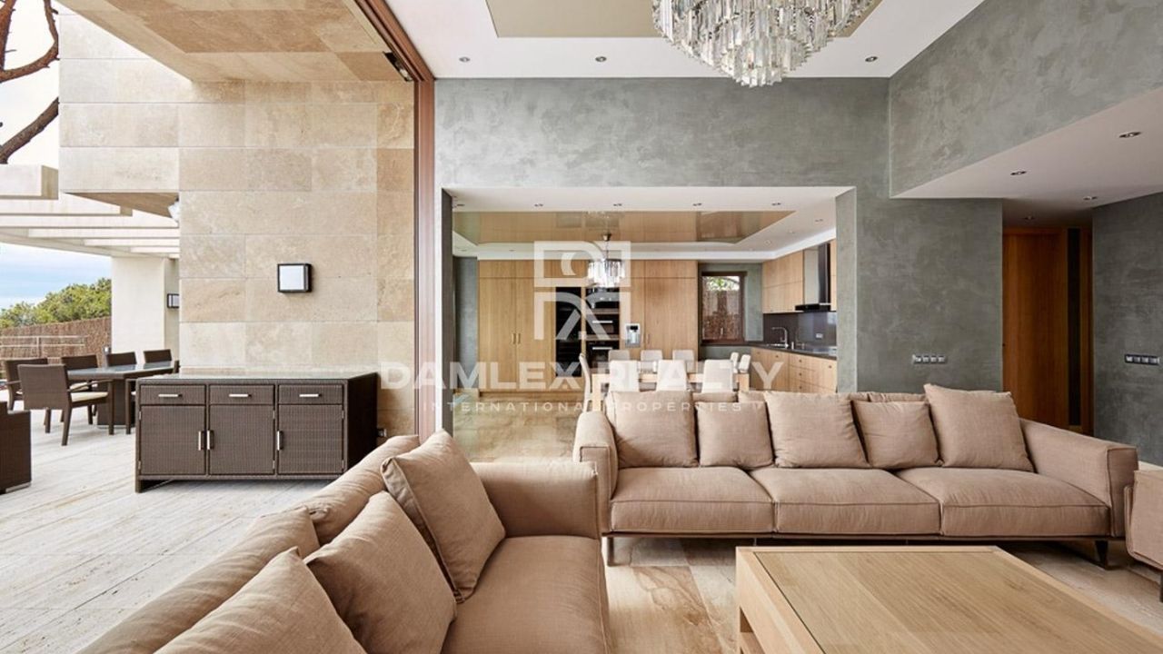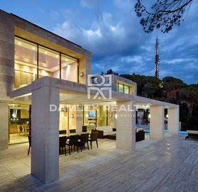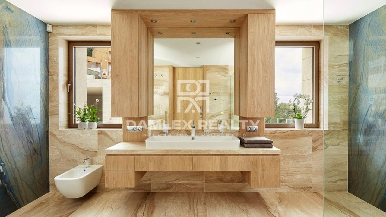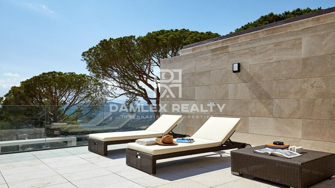 Новый дом в стиле модерн расположен в урбанизации Roca Grossa, в городе Lloret de mar. Участок 1433 м2, дом 618 м2. Имеется газ, центральное водоснабжение, электричество, центральная канализация,, отопление, кондиционирование.Дом оборудован лифтом Orona (4 этажа- 2 жилых, подвал и крыша). В доме 5 спален из них 3 сьюта имеют вид на море и горы, 2 спальни на улицу. В подвале сауна, бодега. В доме установлены: тв, интернет, пожарная сигнализация, охранные система, видеонаблюдение. В доме: свет- Timothy Oulton, кухонная техника Miele, сантехника Duravit, паркет, двери, встроенная мебель- архитектурное бюро Llorens, мягкая мебель Roche bobois.Гараж на две машины оснащен автоматическими воротами, парковка на 4-6 автомобилей. Бассейн с переливом и видом на море, оснащен противотоком. Очищение УФ лучами+ система очистки. Джакузи 4-6 человек. Бассейн и джакузи оснащены массажными форсунками и декоративным освещением. Зона bbq. Ровная площадка с видом на море и горы. Летняя кухня оборудована: газовой плитой, тапаньяки, вок, раковиной (горячая и холодная вода), профессиональная печь Hosper. Освещение, музыкальные динамики, уличная мебель Skyline.Территория сада разделена на 4 террасы, с каждого уровня есть вид на море. Одна из террас отдана под газон, другая- фруктовый сад. В саду высажены декоративные деревья, кусты, цветы, розарий. Сад оборудован автополивом, декоративной подсветкой. Есть профессиональная площадка для игры в петанк. Уровни соединены рампой, что дает возможность легкого передвижения по территории, что особенно важно для пожилых и инвалидов, маленьких детей.Эта роскошная вилла построена в 2016 году. Большой участок, на котором построена вилла, находится на возвышенности, что позволяет вилле иметь потрясающий вид на море и город Льорет де Мар. На нижнем этаже расположен салон-столовая с двумя большими зонами: зоной отдыха с камином и столовой зоной, где расположен большой стол и интегрированная кухня со встроенной мебелью из натурального дерева, сделанной под заказ.Пол выложен натуральным камнем. Разноуровневый потолок со встроенной подсветкой. Зона камина и телевизионная ниша встроены в мебель из натурального дерева. Мебель марки Roche Boboi. Внизу так же расположена большая спальня с гардеробной и ванной комнатой, кабинет, гостевой туалет и прачечная зона. Из салона, кухни и спальни есть выход на большие террасы, к зоне с бассейном и зоне барбекю. На втором этаже расположены 2 спальни, каждая из которых имеет собственную ванную комнату и комнаты-студии и небольшие террасы. Вилла имеет большой гараж площадью 46 м2.