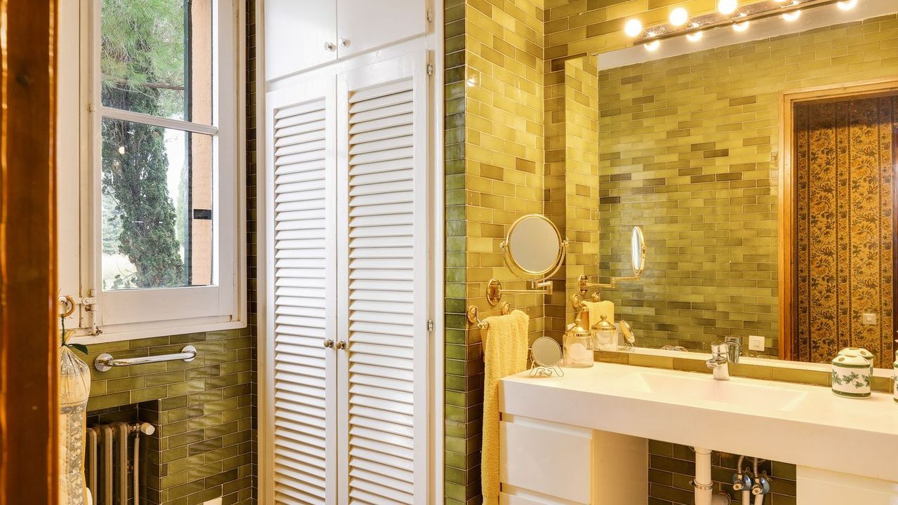 Дом площадью 290м2 с 6 спальнями и 5 ванными комнатами, очень приятный, в средиземноморском стиле, который все же нуждается в некоторой отделке. Дом двухэтажный, на первом этаже есть холл, туалет, большая гостиная с камином и выходом в сад и на крыльцо, три люкса, кухня с офисом и кладовой, кладовая, выход на задний двор, крытая парковка и внутренний гараж на 2 машины. На первом этаже есть коридор со встроенными шкафами, две спальни и ванная комната.