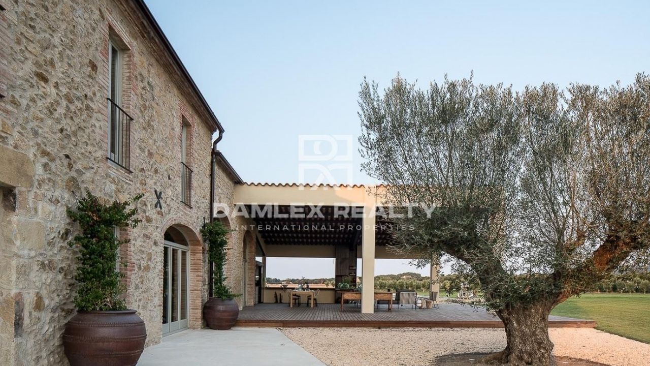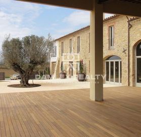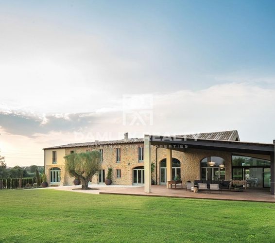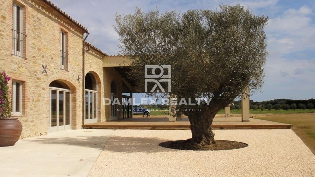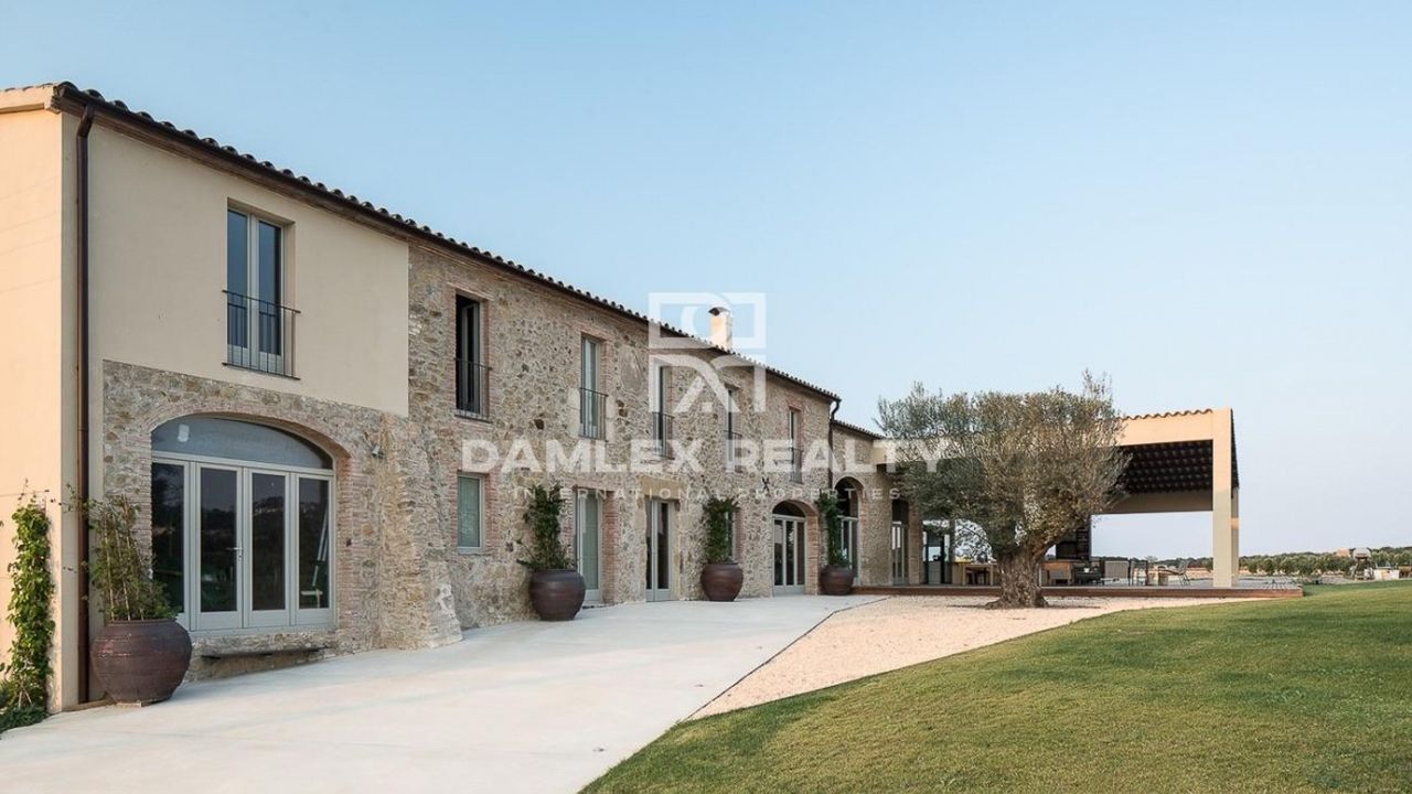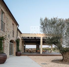Красивая и уникальная усадьба 1850 года, полностью отремонтированая, расположена в городе Pals. Она находится на участке земли площадью 26 000 м2 и имеет в общей сложности 729 м2. Усадьба имеет два этажа. К усадьбе ведет дорога проходящая через кипарисовую аллею.Войдя в главную дверь на первом этаже, вы попадаете в большой вестибюль, где находится лестница ведущая доступа на второй этаж. С этого этажа есть вход в гараж для двух автомобилей. На этом же уровне расположен большой люкс с сводчатым потолком, который включает в себя: спальню, гостиную и ванную комнату, с другой стороны расположена библиотека с камином. Вы можете попасть из обоих помещений в винный погреб. Далее вы находите гостиную с камином и столовой зоной и открытой кухней. Так же в этой зоне есть туалет, кладовка и прачечная, с отдельным вхходом для прислуги.Из великолепной гостиной вы можете выйти на крытую террасу с зоной отдыха, летней столовой и большой площадкой для барбекю. Перед террасой расположен бассейн с зоной для загара.На втором этаже расположен мастер-люкс со сводчатами потолками, с ванной комнатой, гардеробной, и открытая гостиная с большим стеклянным окном - с видом на гостиную.На другой стороне второго этажа вы найдете еще две спальни, одна с собственной ванной комнатой и гардеробной, отдельную ванную и салон для отдыха. Территорию в 6000 m2 занимают луга, 10000 м2 газона с спринклерной системой орошения, произрастают 140 оливковых деревьев, 1000 виноградных кустов сорт Каберне Совиньон, 989 кипарисов, 8 кипарисы Стрикта длиной 5 метров, 19 сосен, а также различные фруктовые деревья, груши, яблони, вишни, сливы, персики, абрикосы, инжир, мушмула, гранаты, боярышник, 2 айвы , все с системой орошения.