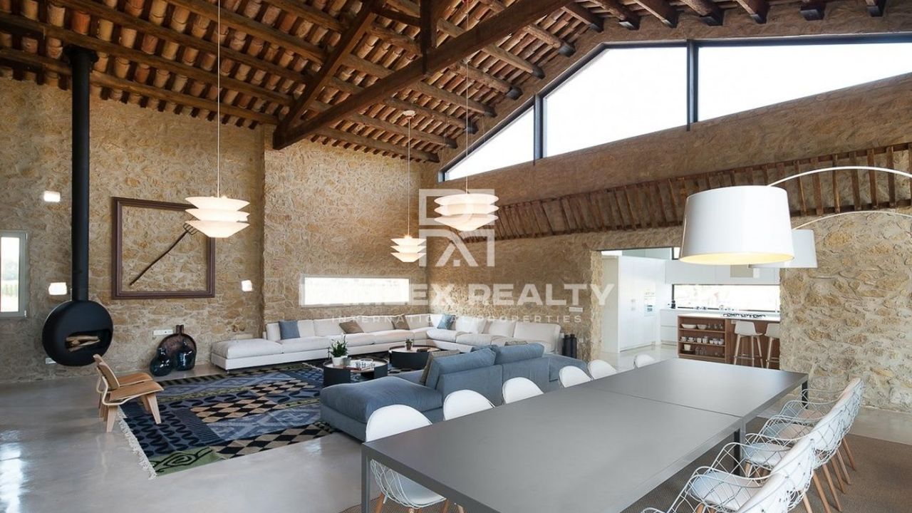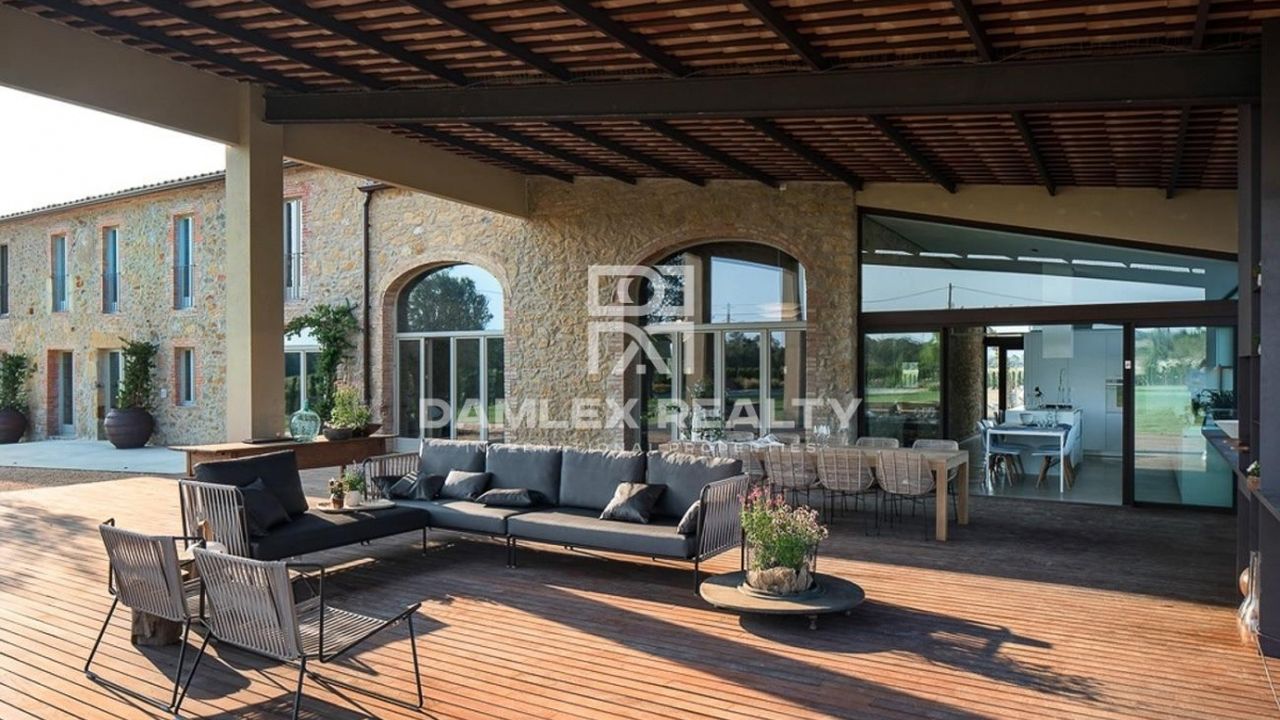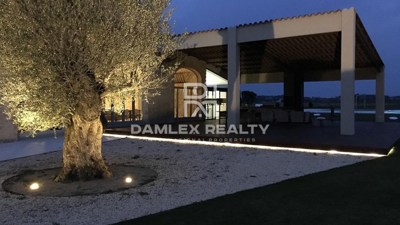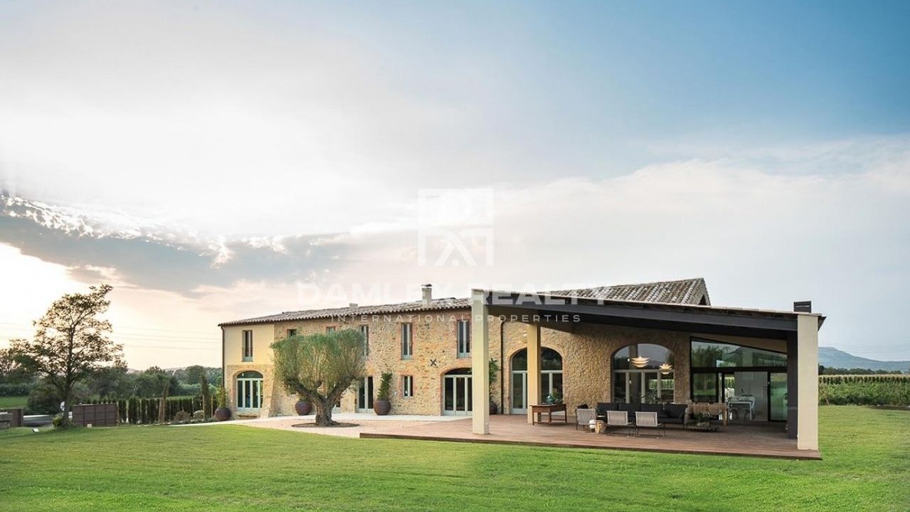 Красивая и уникальная усадьба 1850 года, полностью отремонтированая, расположена в городе Pals. Она находится на участке земли площадью 26 000 м2 и имеет в общей сложности 729 м2. Усадьба имеет два этажа. К усадьбе ведет дорога проходящая через кипарисовую аллею.Войдя в главную дверь на первом этаже, вы попадаете в большой вестибюль, где находится лестница ведущая доступа на второй этаж. С этого этажа есть вход в гараж для двух автомобилей. На этом же уровне расположен большой люкс с сводчатым потолком, который включает в себя: спальню, гостиную и ванную комнату, с другой стороны расположена библиотека с камином. Вы можете попасть из обоих помещений в винный погреб. Далее вы находите гостиную с камином и столовой зоной и открытой кухней. Так же в этой зоне есть туалет, кладовка и прачечная, с отдельным вхходом для прислуги.Из великолепной гостиной вы можете выйти на крытую террасу с зоной отдыха, летней столовой и большой площадкой для барбекю. Перед террасой расположен бассейн с зоной для загара.На втором этаже расположен мастер-люкс со сводчатами потолками, с ванной комнатой, гардеробной, и открытая гостиная с большим стеклянным окном - с видом на гостиную.На другой стороне второго этажа вы найдете еще две спальни, одна с собственной ванной комнатой и гардеробной, отдельную ванную и салон для отдыха. Территорию в 6000 m2 занимают луга, 10000 м2 газона с спринклерной системой орошения, произрастают 140 оливковых деревьев, 1000 виноградных кустов сорт Каберне Совиньон, 989 кипарисов, 8 кипарисы Стрикта длиной 5 метров, 19 сосен, а также различные фруктовые деревья, груши, яблони, вишни, сливы, персики, абрикосы, инжир, мушмула, гранаты, боярышник, 2 айвы , все с системой орошения.
