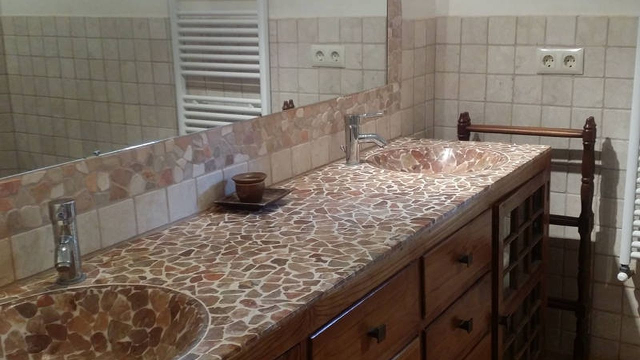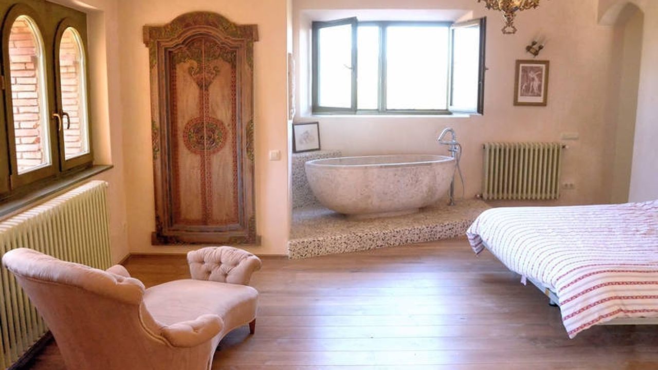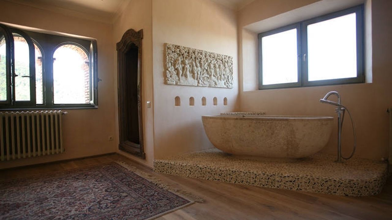 В мансардном этаже супружеская спальня с камином, гардеробной с встроенными шкафами и ванной комнатой с баней хамам.
