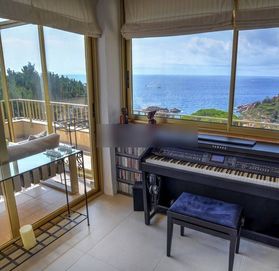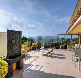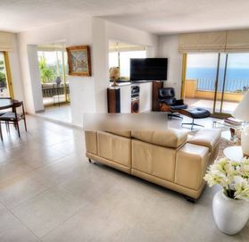 В квартире 3 спальни,2 ванные, большая светлая открытая гостиная с выходом на террасы (примерно 110 м2) с прямым видом на море.