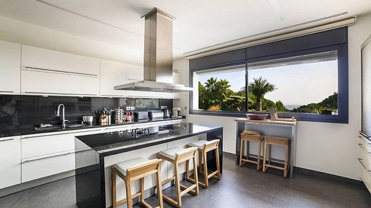 Дом в стиле модерн с видом на море в городе Sant Andreu de Llavaneres на побережье Maresme. Расстояние до центра Барселоны 38 км, расстояние до моря 4 км. Общая площадь 600 м.кв. на территории 2500 м.кв. Год постройки 2010, в 2013 была проведена полная реформа дома. В доме 6 спальных комнаты, 6 ванных комнат, просторный салон с большими окнами, современная полностью оборудованная кухня, гардеробная, просторный спортивный зал, гараж на 4 автомобиля, бодега и техническое помещение. Система отопления, кондиционеры. Продается с мебелью, техникой и оборудованием. У дома большая территория с садом, бассейном и зоной для отдыха. С территории открываются красивые виды на море. Одно из лучших предложений на Коста Марезме!