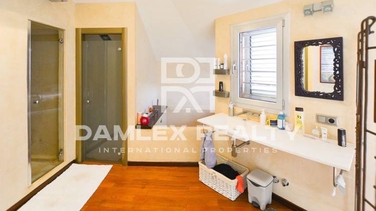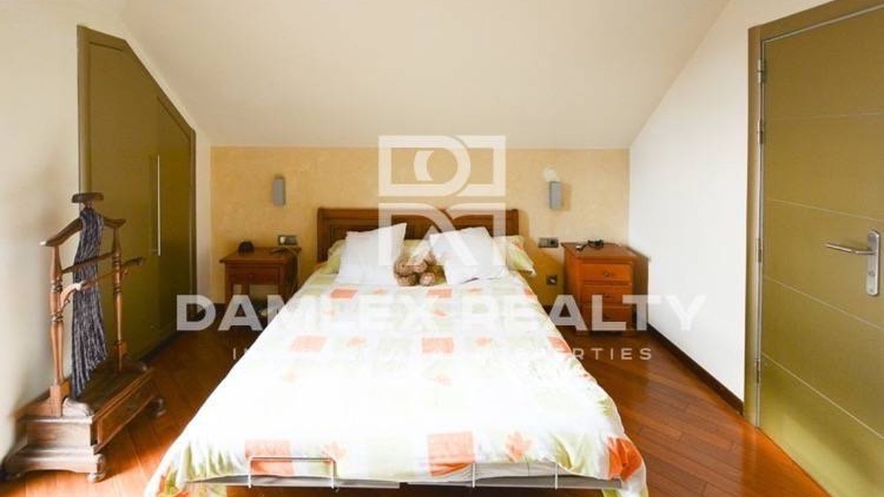 Дом на земельном участке площадью 1000 м2. Площадь дома 420 м2. Дом расположен в охраняемой урбанизации Supermaresme в городе Сан Винсенс де Монтальт. Недалеко от дома расположена остановка автобуса, там же останавливается школьный автобус. Дом имеет вид на море. Недавно был сделан ремонт. 5 спален, 5 ванных комнат, большой зал, салон-столовая, экипированная кухня. Теплый пол, кондиционеры во всех комнатах, камеры видеонаблюдения, сигнализация по периметру участка. Гараж на 4 автомобиля. Бассейн 8x4 с солевой отчисткой воды. Спортивная площадка с двумя теннисными кортами и площадка для игры в бадминтон.