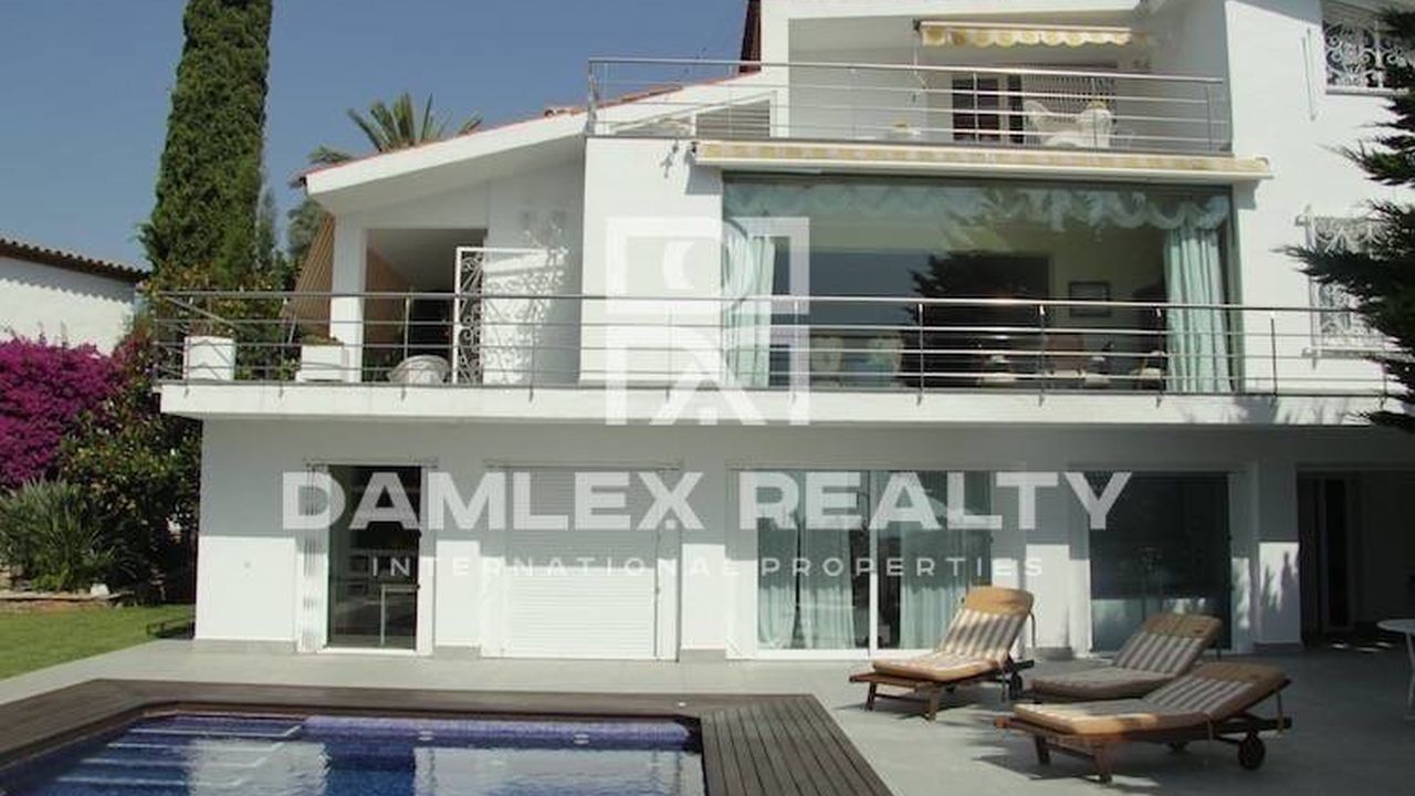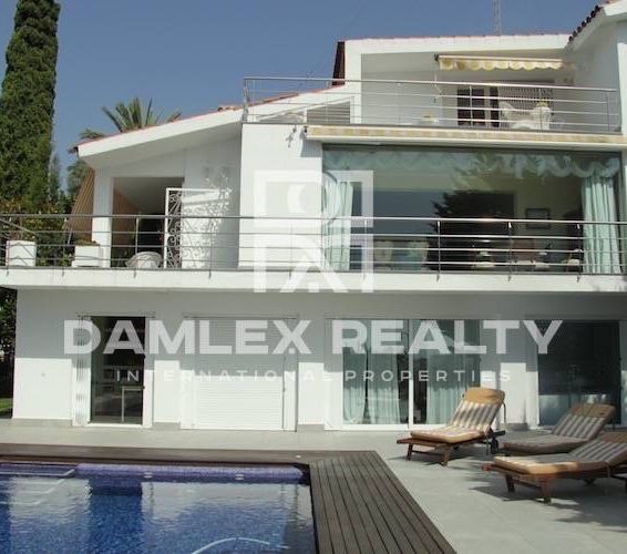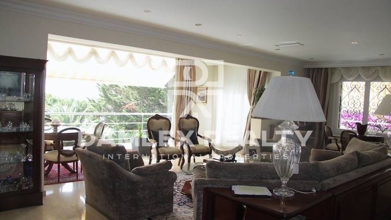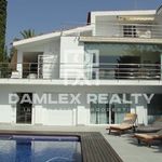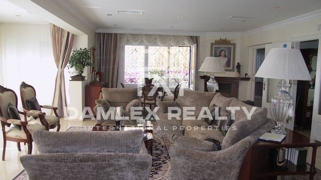 На первом этаже расположены салон с камином, холл, комната отдыха, большая экипированная кухня. Из салона, через панорамные окна, открывается вид на море. Лифт 2-3 персоны. Так же из салона есть выход в сад и на крытую террасу. На втором этаже: кабинет с встроенными шкафами, гардеробная, большая спальня с террасой, ванная комната с джакузи. Также в доме есть нижний этаж с собственным входом. На нем распоожены два больших шкафа, ванная комната, собственный салон, спальня, вторая комната с двумя краватями, собственной ванной с душем. Комнаты на этом этаже имеют выход и вид на сад с бассейном. В доме есть лифт. Двери с кодовой системой. Винный погреб расположен на нижнем уровне, имеет собственный вход. В нем так же расположены бар, ванная комната, зона барбекю с большим столом. Гараж открытый, под навесом есть место для 4 машин.Общие характеристики:ВИЛЛА/ДОМ, дом на возвышенности с панорамным видом, вид на море, гостиная, камин, экипированная кухня, в спальнях встроенные шкафы, терраса, система кондиционирования, отопление, гараж, сад с автополивом, барбекю, бассейн, сигнализация, строительные материалы от лучших европейских производителей, охраняемая урбанизация, хорошая инфраструктура, продается с мебелью.