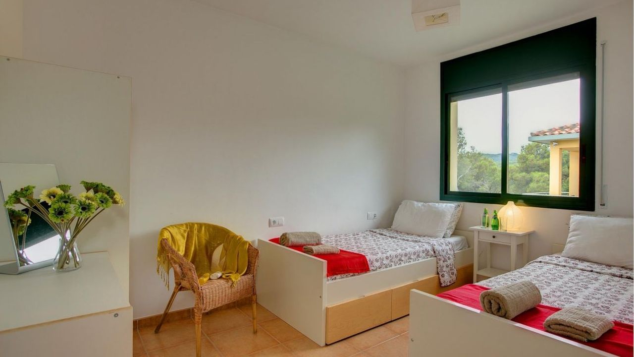 На верхнем этаже находится прихожая, ванная комната и 4 двухместных спальни, одна из которых с выходом на террасу.