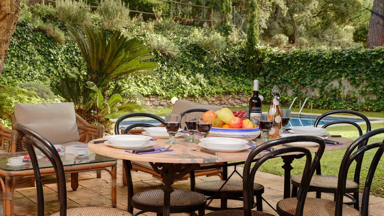 На среднем, главном, этаже (площадью 100 м2) находятся красивая гостиная с камином и выходом на террасу, в сад и к бассейну, полностью оборудованная кухня.