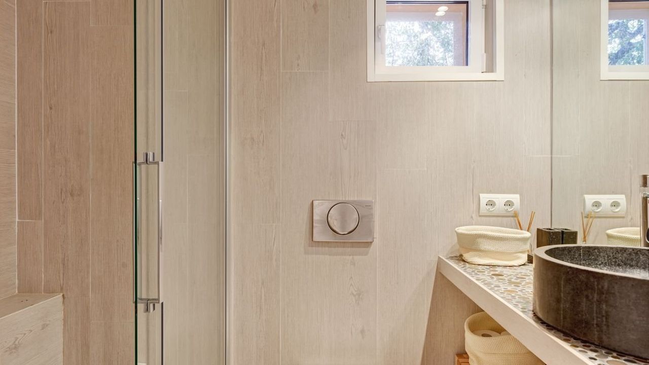 На вернем этаже в Вашем распоряжении две спальни с двуспальными кроватями, которые имеют общую ванную комнату с душем, одна спальня с двумя индивидуальными кроватями и собственной ванной комнатой. Здесь же Вы найдёте зону прачечной.