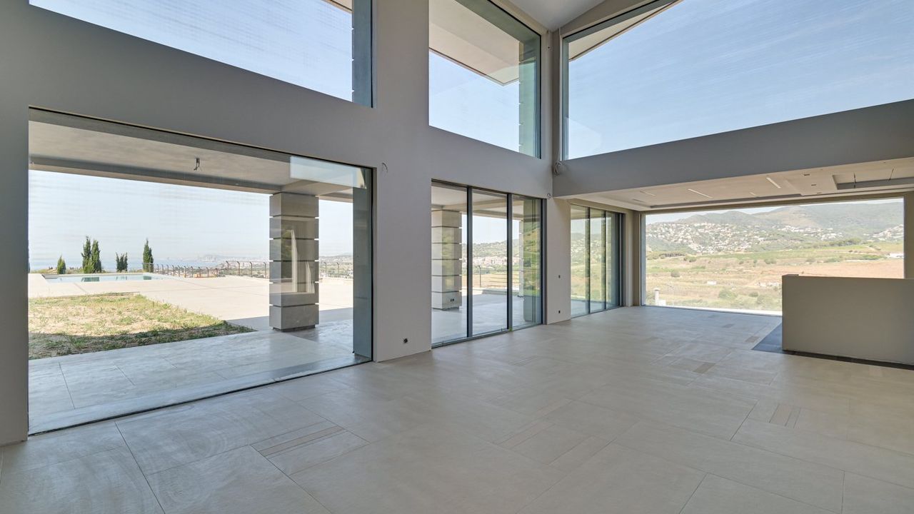 Дом, построенный из высококачественных материалов из Италии и Испании, имеет большие и светлые помещения, подчеркнутые дизайном панорамных окон, которые позволяют наслаждаться исключительным видом на окружающие пейзажи.
