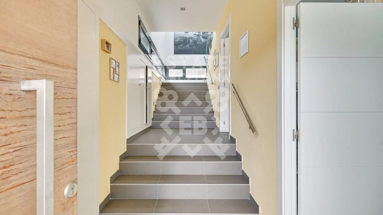 Площадью более 450 м2, распределен на 2 этажа: первый этаж состоит из большой гостиной с открытой кухней с островом, 1 спальни, 1 ванной комнаты и выхода в экстериер.