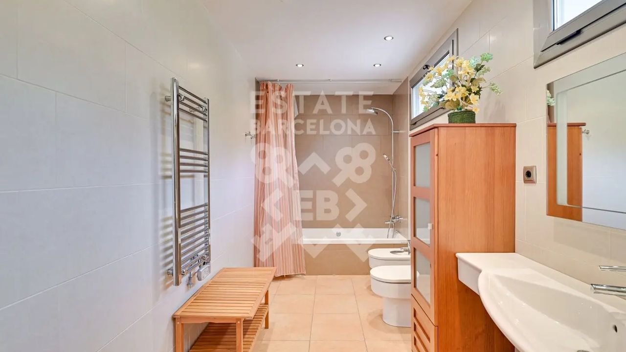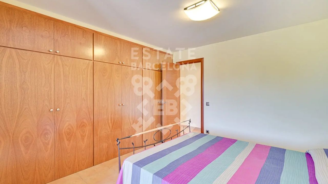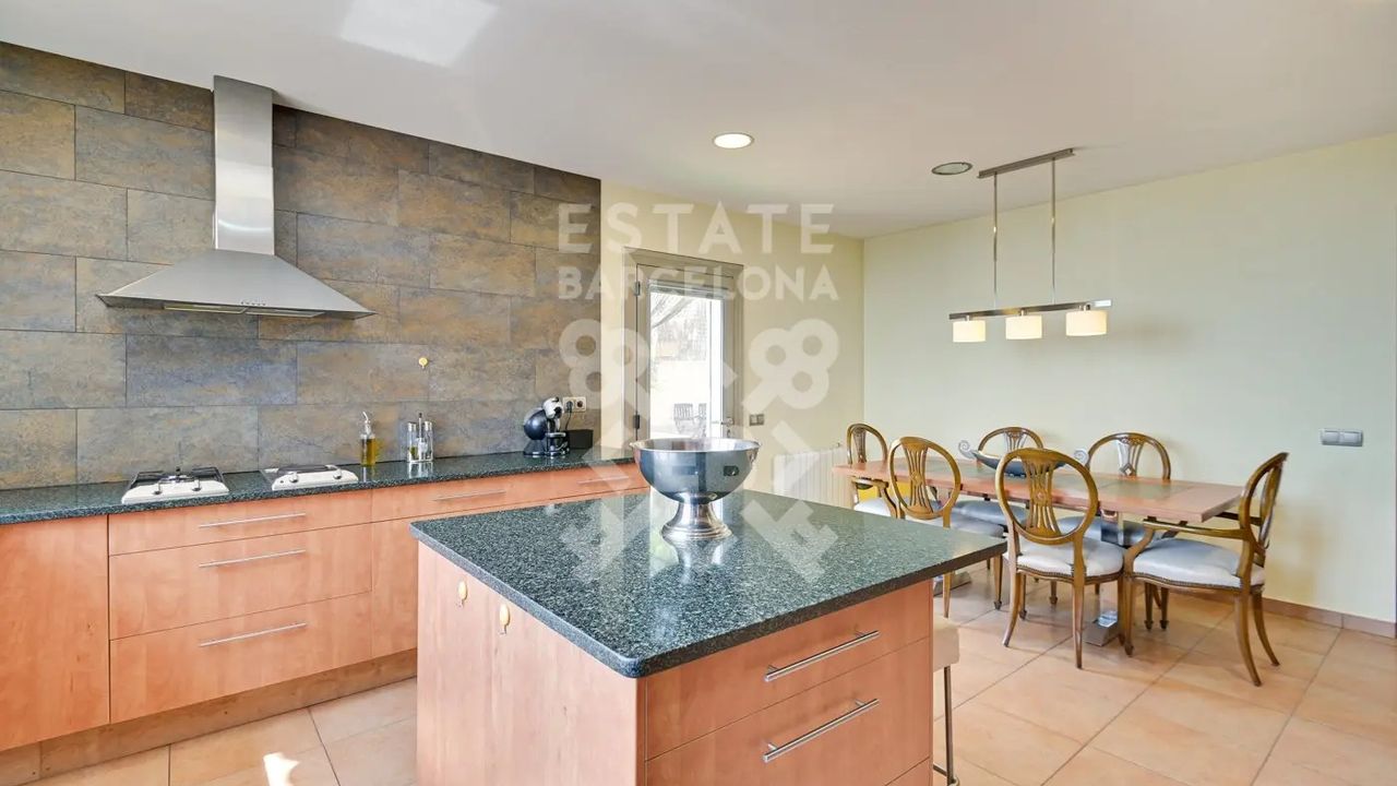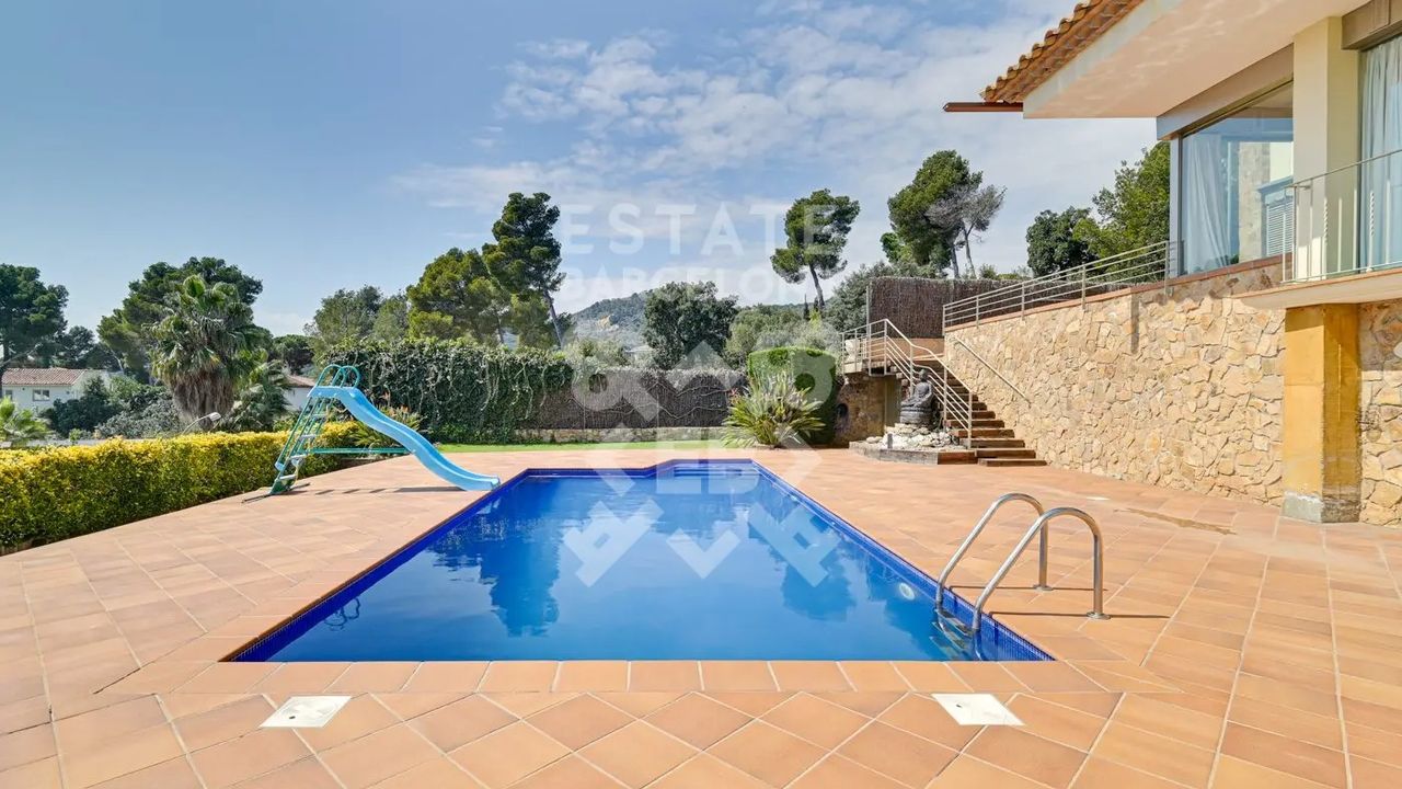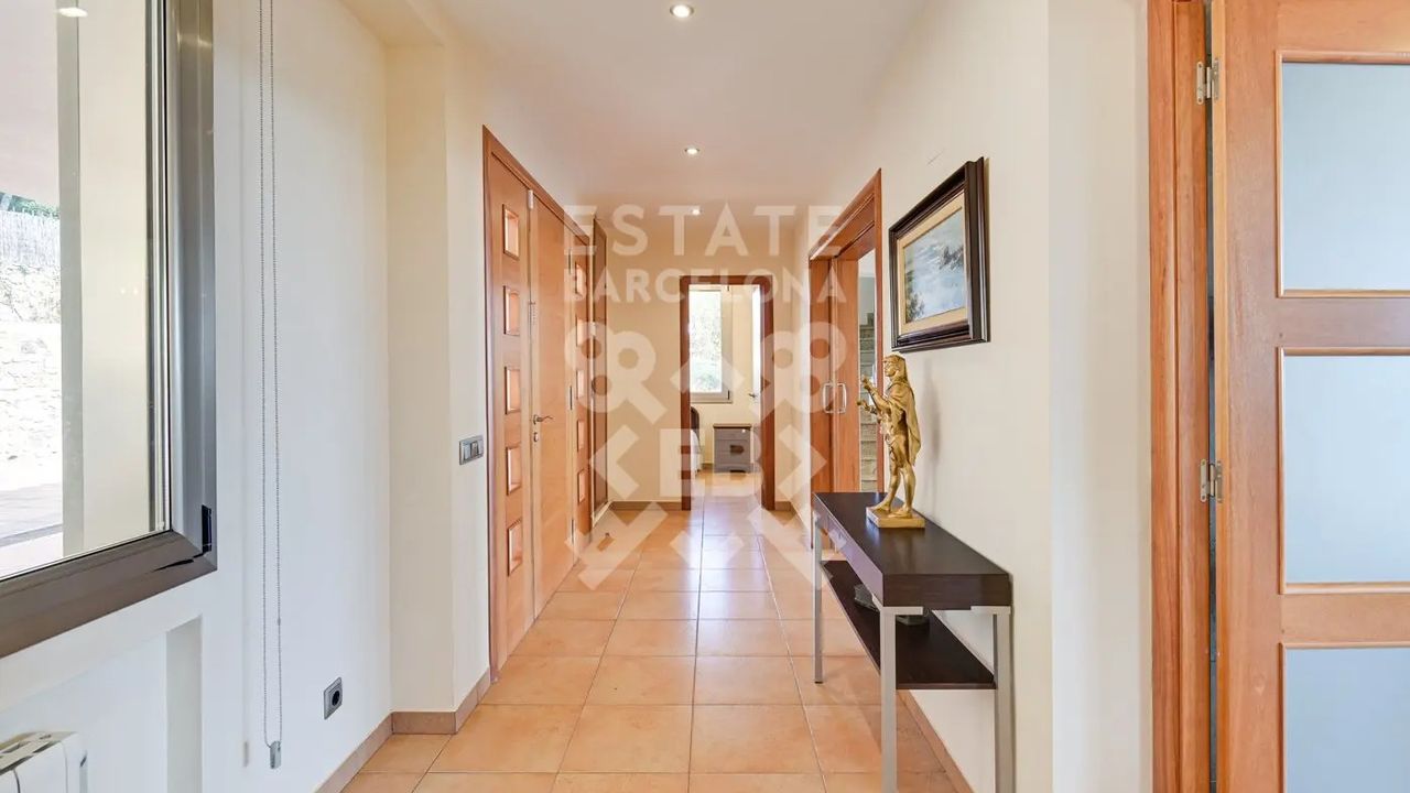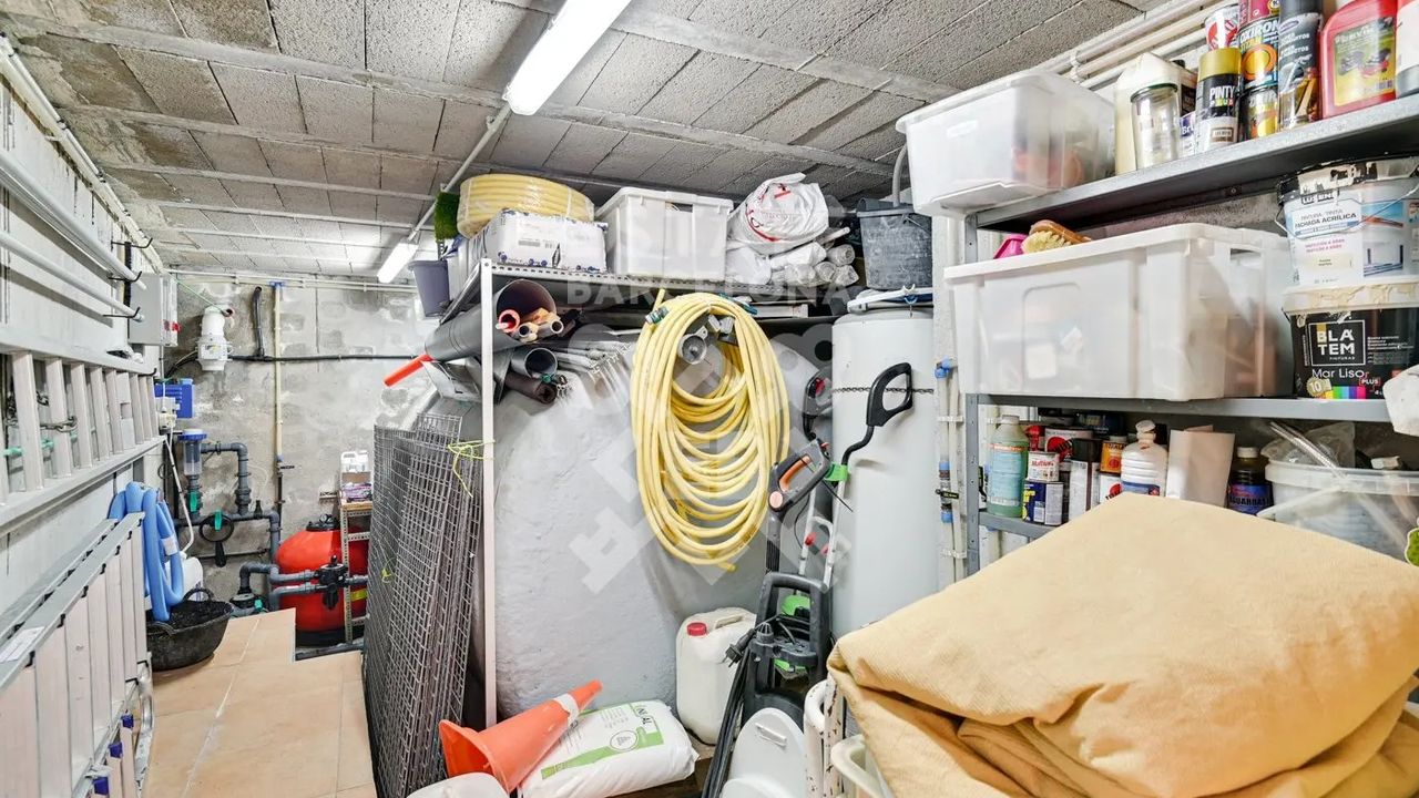Мы выделяем такие детали, как ирригационная установка для всего сада, закрытый гараж, дровяная печь, раздевалка и полностью оборудованная ванная комната у бассейна, синие радиаторы отопления, окна с двойным остеклением, моторизованные жалюзи, оцинкованные железные решетки в стиле Майорки, дополнительный резервуар для питьевой воды.