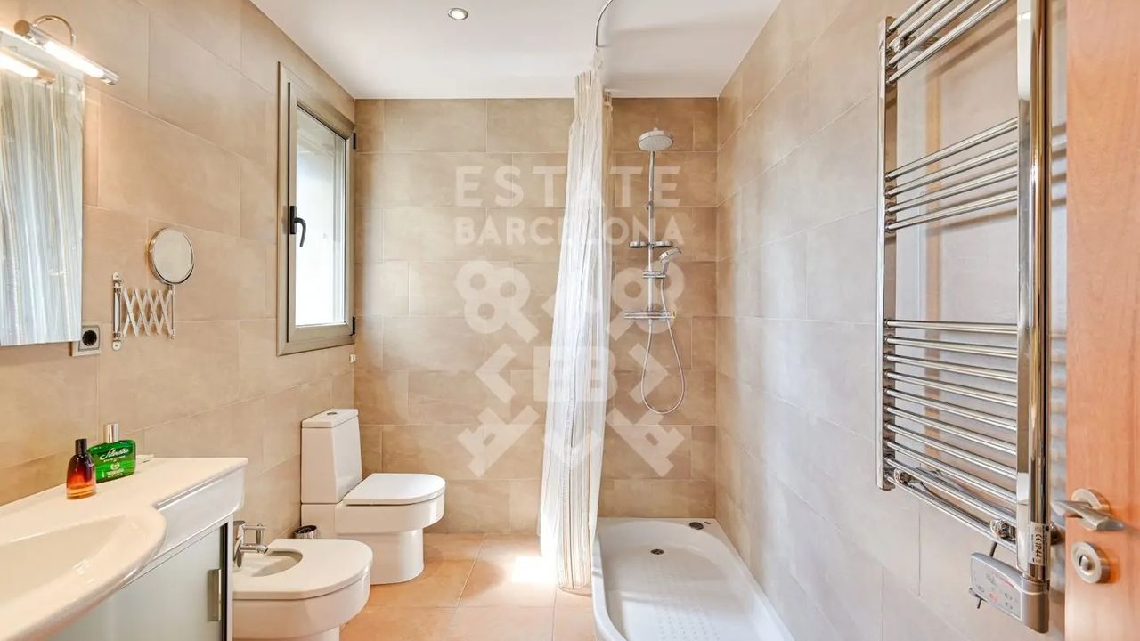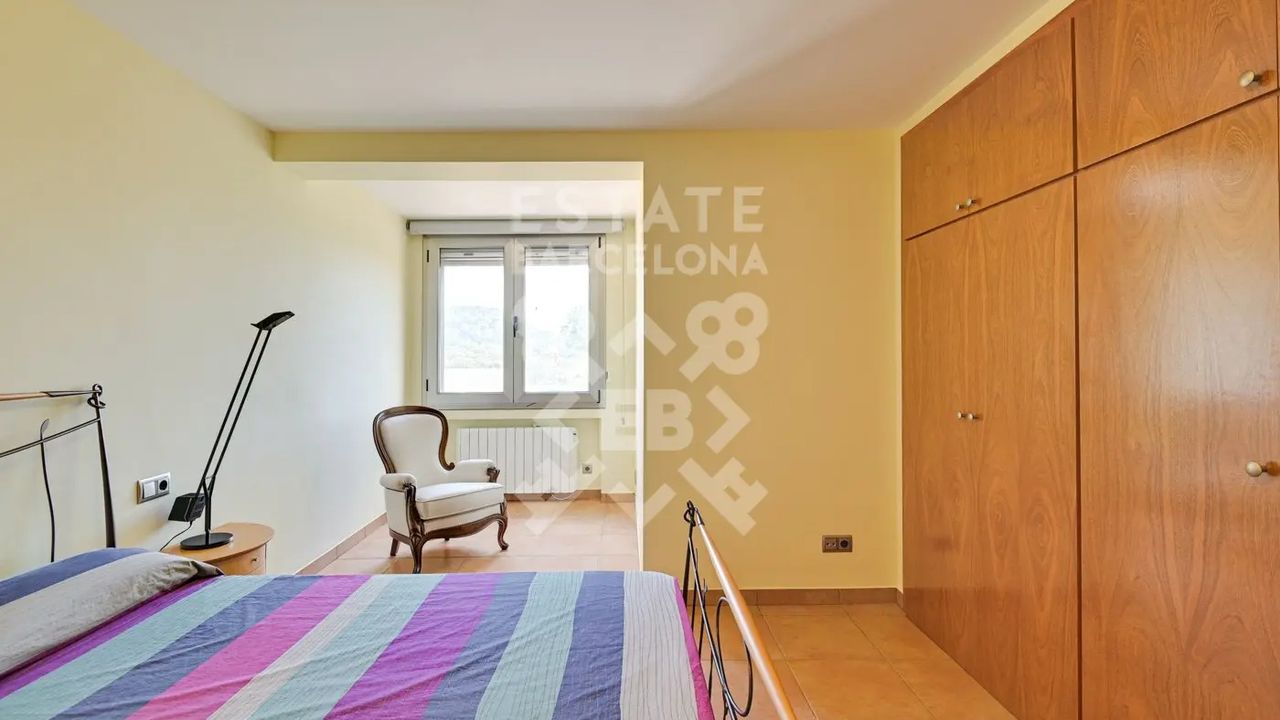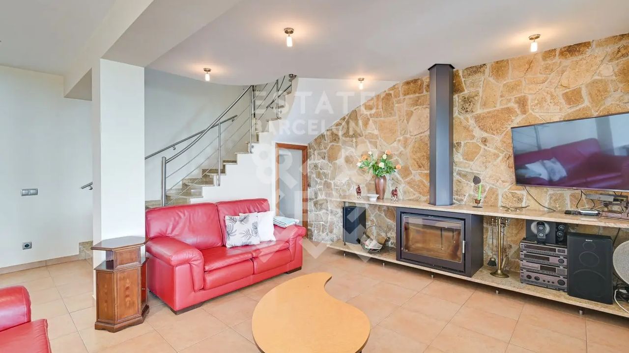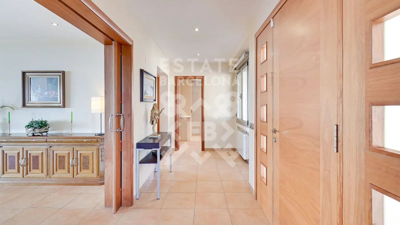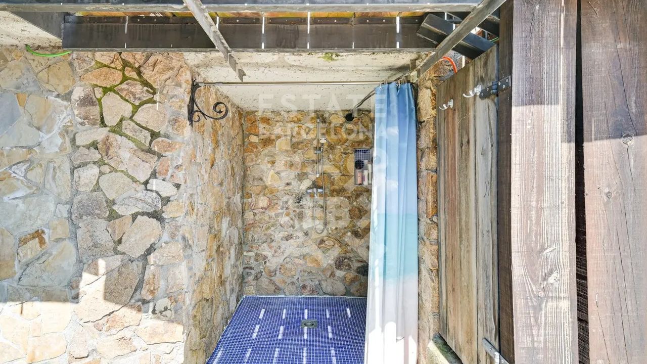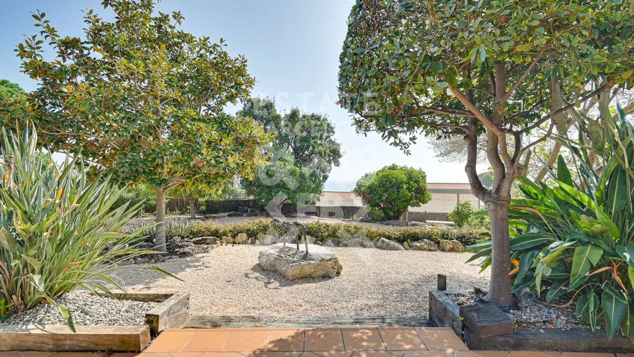 Мы выделяем такие детали, как ирригационная установка для всего сада, закрытый гараж, дровяная печь, раздевалка и полностью оборудованная ванная комната у бассейна, синие радиаторы отопления, окна с двойным остеклением, моторизованные жалюзи, оцинкованные железные решетки в стиле Майорки, дополнительный резервуар для питьевой воды.