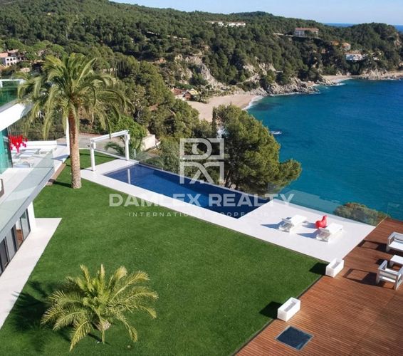 Эта великолепная дизайнерская вилла находится в закрытом охраняемом поселке, расположенном в 5 км от уютного старинного городка Тосса де Мар. Вилла расположена на скалистом выступе благодаря чему имеет потрясающий вид на море. Основной дом имеет большую гостиную, полностью укомплектованную кухню, две спальни, большой мастер-суит с собственной ванной комнатой и гардеробной. По соседству с основным домом распологаются гостевые апартаменты с большой террасой, гостевыми спальнями, отличной зоной для отдыха. Вилла современного дизайна, выдержана в стиле минимализм, имеет панорамное остекление, несколько зон отдыха, винный погреб, панорамный лифт который соединяет гараж с жилыми помещениями дома. Данный объект отвечает самым изысканным вкусам, множество деталей придают вилле эксклюзивность, к таким деталям можно отнести наличие двух частных пещер на пляже, одна из которых превращена в зону отдыха, а другая используется как гараж для морского судна. Вилла продумана до мельчайших деталей, особое внимание было уделено окружающим видам, находясь в доме или на участке возде бассейна создается впечатление бескрайнего горизонта уходящего вдаль. Возможность покупки дома по соседству, который используется как гостевой, площадь дома 390 м2, 5 спален, 5 сан узлов, участок 1200 м2.