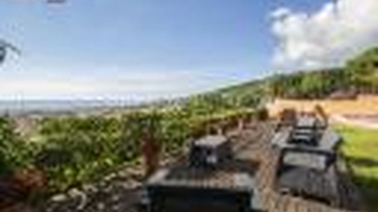 Хочется выделить прекрасный сад с просторной летней террасой с барбекю и бассейном отделанным натуральным тиком откуда открывается фантастический вид на море.