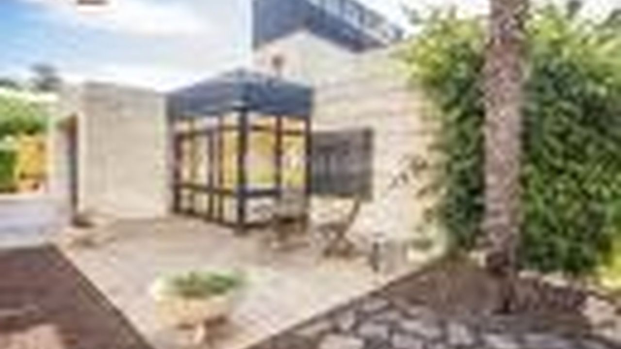 Он построен в 1999 году,площадь дома составляет 274 м2,трехэтажный,участок 819 м2Просторная гостиная 45 м2 с великолепным видом на море,кухня,четыре большие спальни,одна из них с личной ванной комнатой,всего в доме 4 ванных комнаты,тренажерный зал,комната для семейного досуга (бильярд,библиотека...), гараж на два автомобиля с автоматическими воротами,напольное покрытие натуральный мрамор и паркет,вместительные встроенные шкафы,межкомнатные двери из натуральной вишни,оконные рамы из алюминия,стеклопакеты с поворотной системой,автоматические шторы,сигнализация,видеокамера на входе,отопление,автоматический полив.