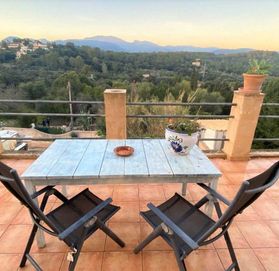 На первом этаже есть еще 2 спальни, ванная комната, гостиная и кухня с выходом на прекрасную террасу с потрясающим видом на горы Трамонтаны.
