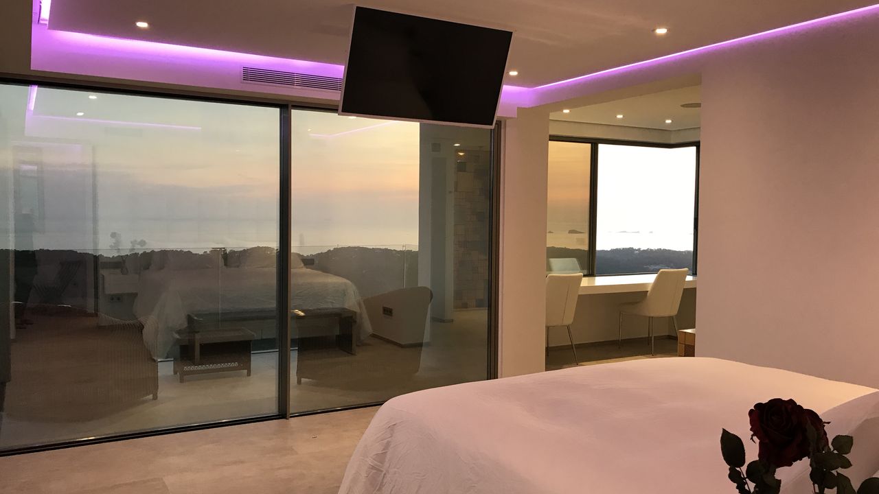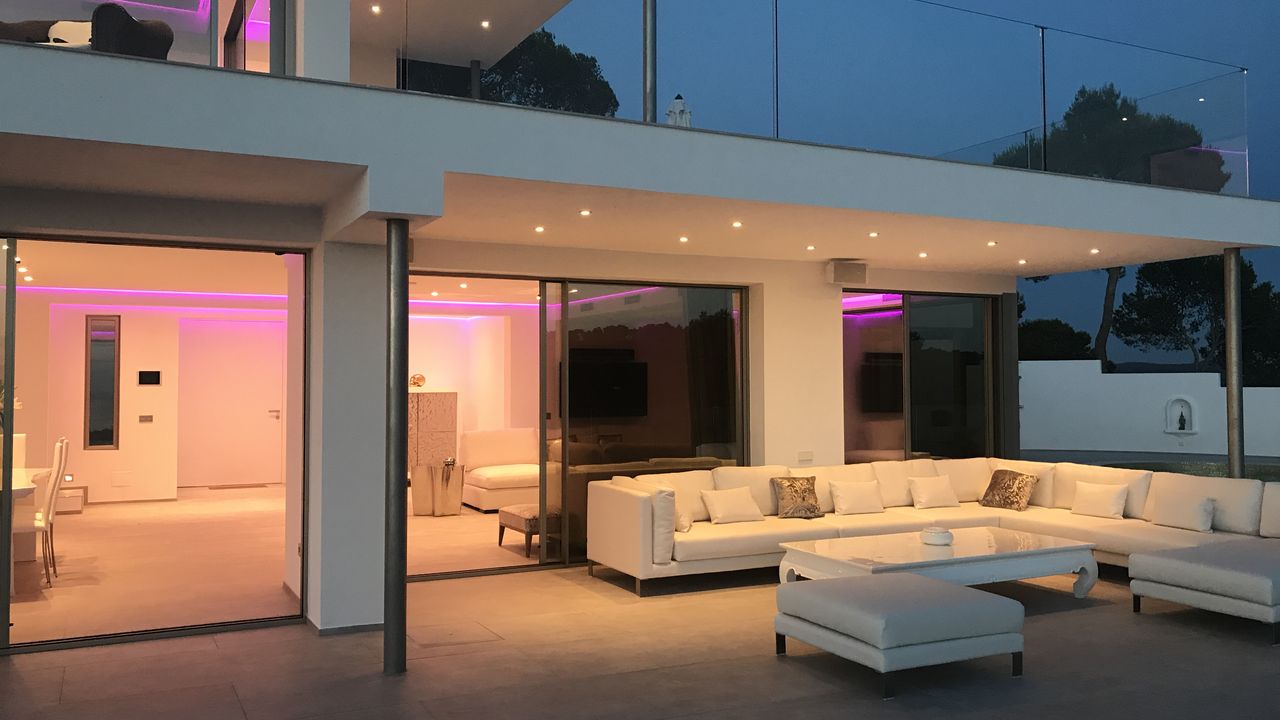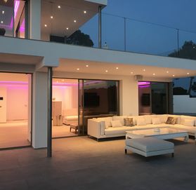 Все 10 комнат на вилле могут быть освещены индивидуально различными цветами.