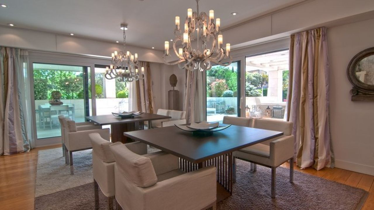 Предлагается просторный холл, 4 универсальные спальни, 6 ванных комнат, гостиная, столовая, кухня, гардеробные, кабинет, террасы.