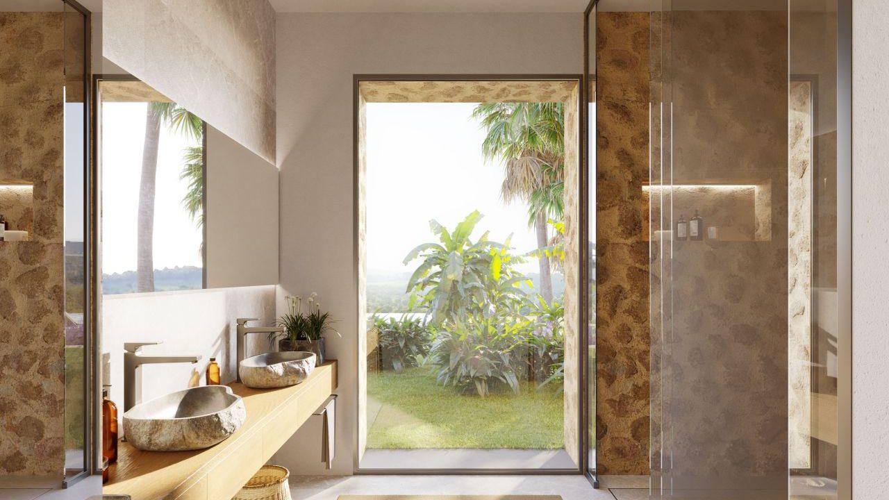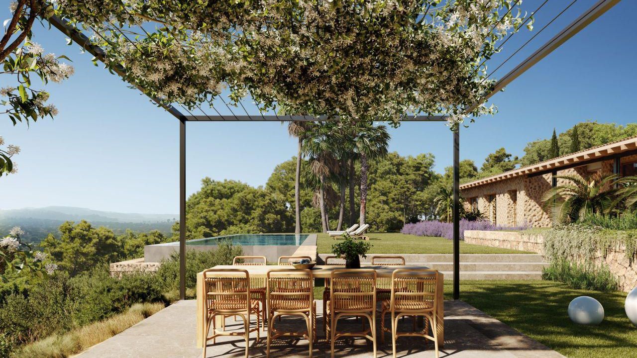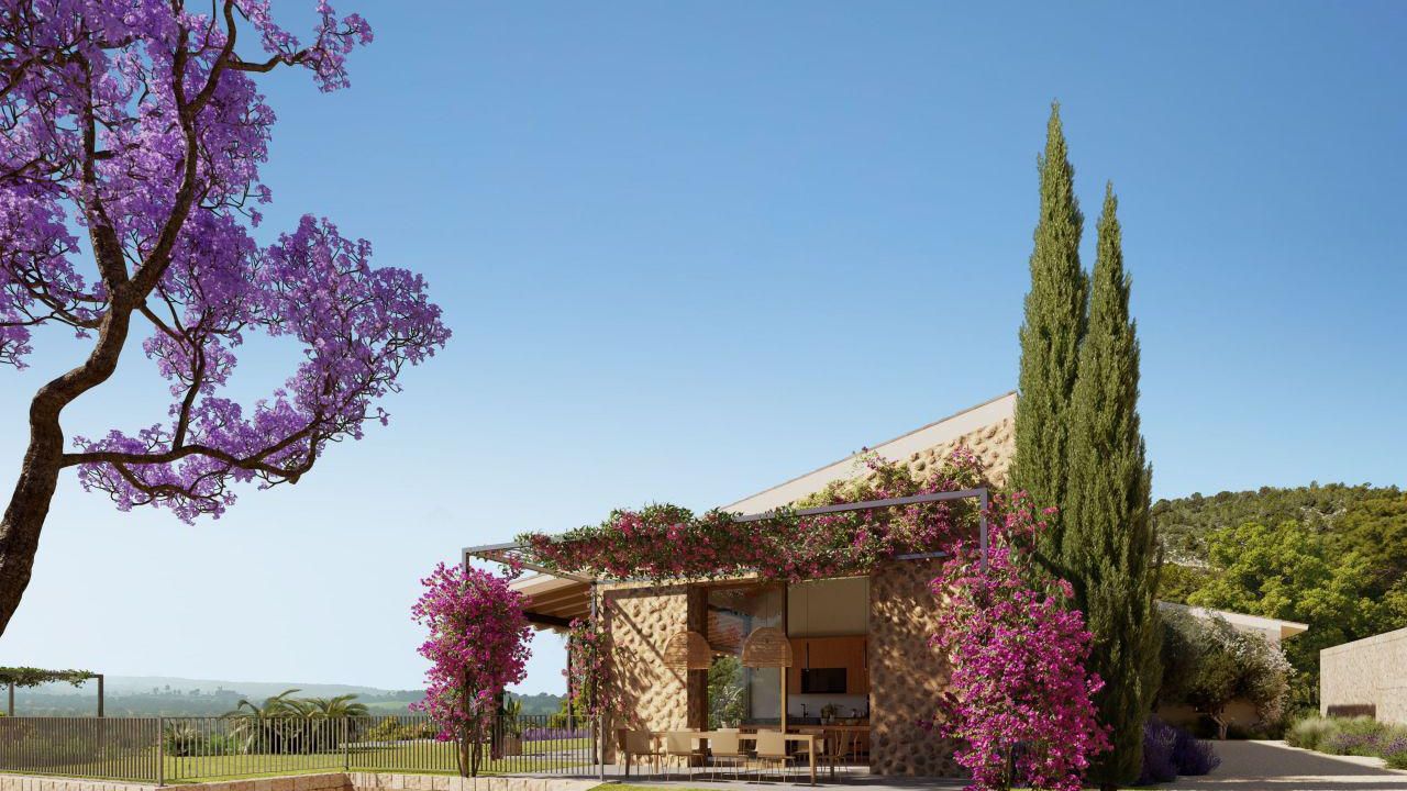 Эта эксклюзивная новая построенная недвижимость расположена на участке примерно 16.320 м2, недалеко от очаровательной деревни Санта-Мария-дель-Камы. Как он расположен на склоне холма будет захватывающий вид на ландшафт и залив Пальмы.