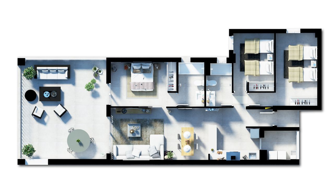 Canyamel Pins имеет квартиры с 2 и 3 спальнями, 2 ванными комнатами (одна из них в главной спальне) и просторные террасы, позволяющие наслаждаться непревзойденным средиземноморским климатом.