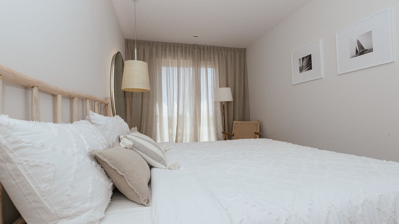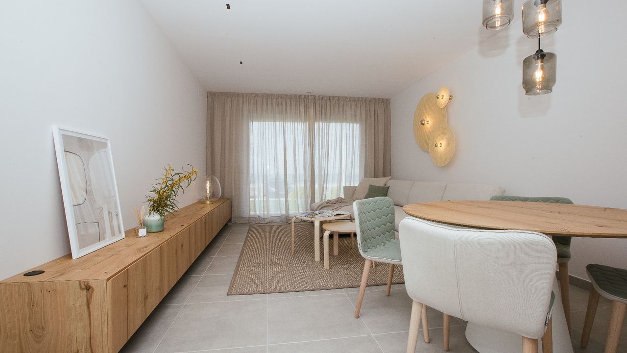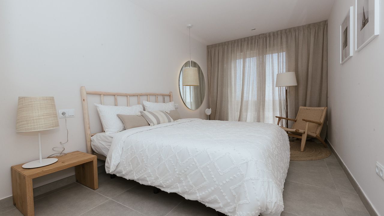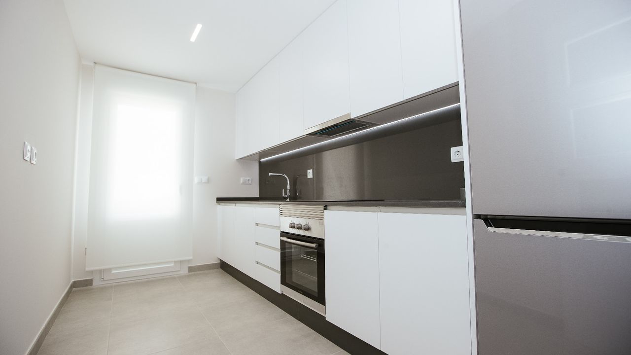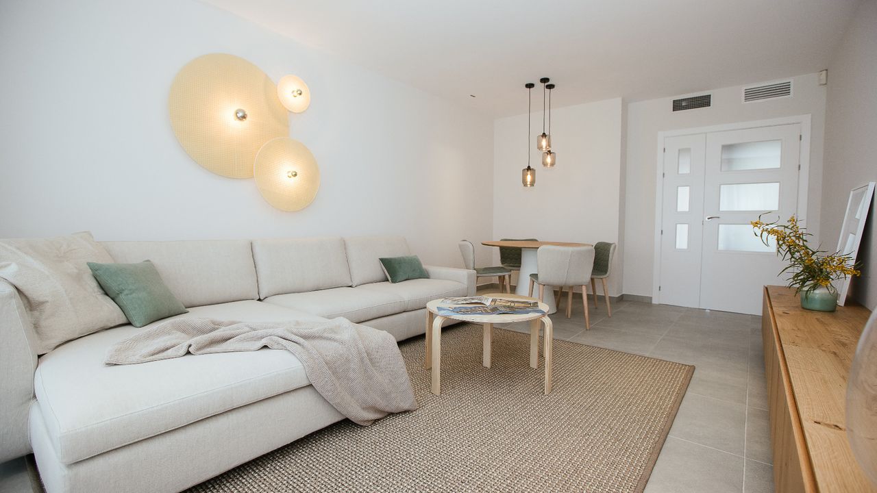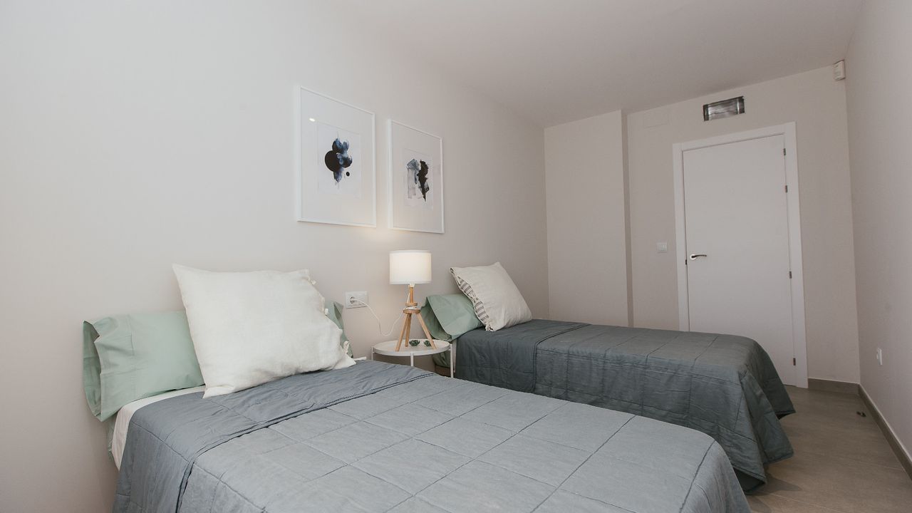 Superb Apartments New Construction in 1 ST SEA LINE at the Manga del Mar Menor! These apartments have an area of 90 m2 with 2 bedrooms and 2 bathrooms, an independent kitchen, a spacious living- and dining room extremely luminous. The apartments have a traverse view of the Mediterranean Sea on one side and the Mar Menor on the other side offering breathtaking views!! Ideal for its location, just 800 meters from the port of Tomás Maestre, where we will find a leisure area with bars, cafes, restaurants, shops, supermarkets, pharmacies, banks, etc. This residence has 45 magnificent apartments where you can enjoy the magnificent sunsets on the sea from your terrace. Included in the price: ceramic hob, electric oven and extractor hood Prices from 152.000 Euros to 180.000 Euros. Posibility for garage from 14.000 Euros. Counts with SHOW HOUSE FOR VISITING.