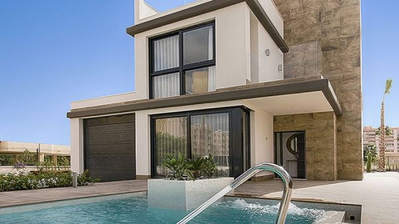 Современные отдельно стоящие виллы расположены в городе Ла Манга. Одноэтажные дома состоят из 3 спален 2 ванных, гардеробной, гостиной и полностью оборудованной кухни. Собственный участок 450 м2. Просторные террасы, сад, есть возможность сделать собственный бассейн.