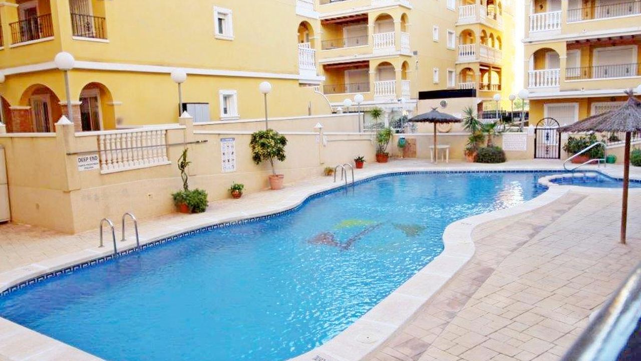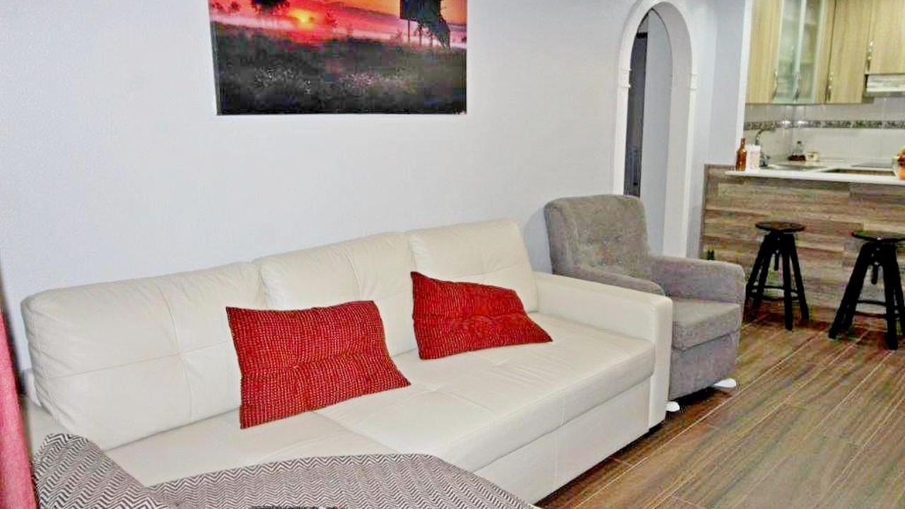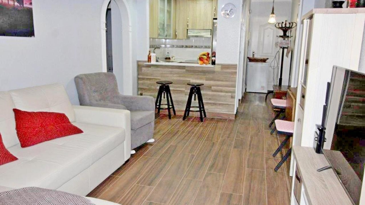 Угловая квартира на первом этаже с ориентацией на СЕВЕРО-ЗАПАД, расположена в жилом комплексе с общим бассейном в Альгорфе, рядом с полем для гольфа. Квартира полностью отремонтирована, имеет площадь 82 м2 и состоит из 2 спален, 1 ванной комнаты, гостиной, кухни и прачечной. Кондиционер в гостиной и система очистки воды осмос на кухне. Огромная передняя терраса с беседкой и местом для парковки автомобиля. Район уютный район, рядом все услуг и муниципальный спортивный центр. Всего 15 минут до пляжа. Налог 183,32 евро / год. СООБЩЕСТВО 120 евро / квартал.