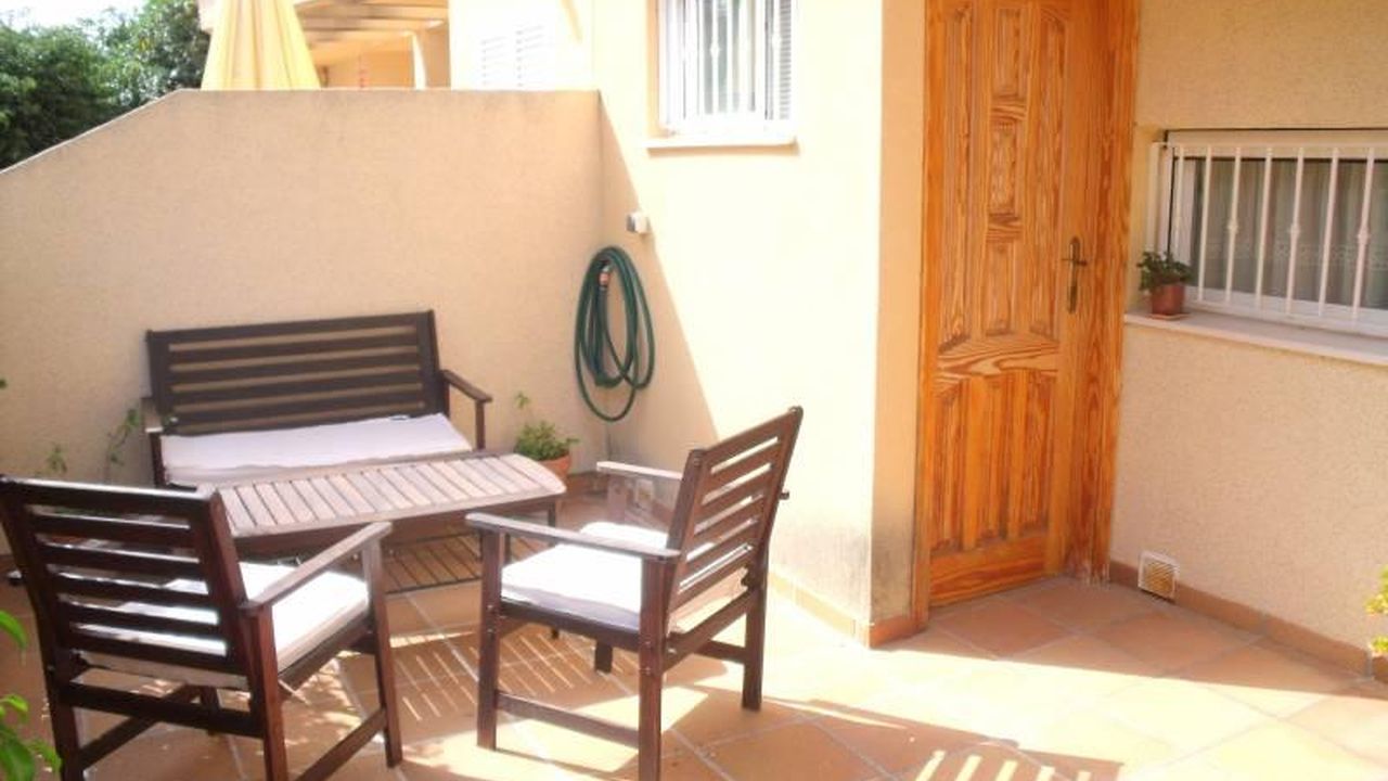 Отличный таунхаус на 2 хозяина в урбанизации в Эль Кампельо, общая площадь 300 м2, 3 этажа и подвал, переоборудованный в салон с барной стойкой, гараж на 2 машины. 3 спальни, 3 ванные комнаты и 2 туалета. На первом этаже кухня с кладовой, салон с камином, туалет, гостиная, веранда и большой сад. На втором этаже 3 спальни, 2 ванные комнаты и туалет. На третьем этаже комната с мансардой, 1 ванная комната, терраса, подсобное помещение и сушилка. В доме проведено центральное отопление. Встроенные шкафы. На территории урбанизации есть бассейн и зеленые зоны отдыха. В 5 минутах ходьбы до пляжа, рядом с торговым центром Villa Marco и Французским Лицеем.