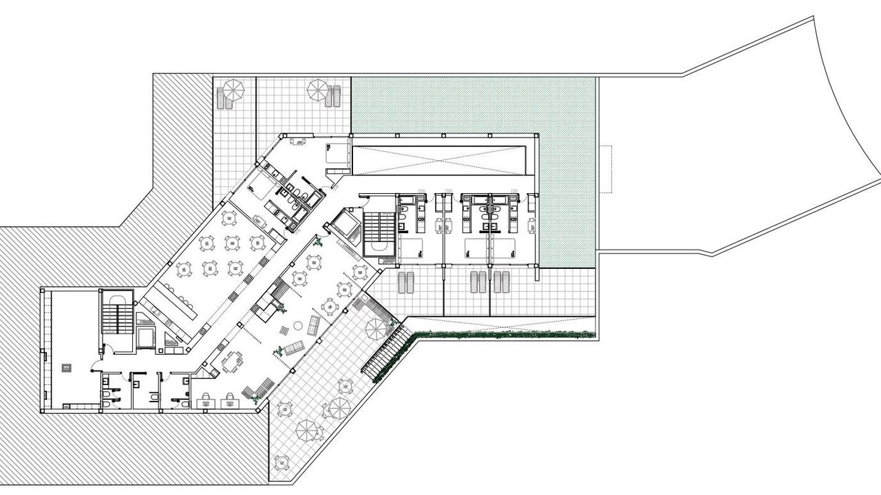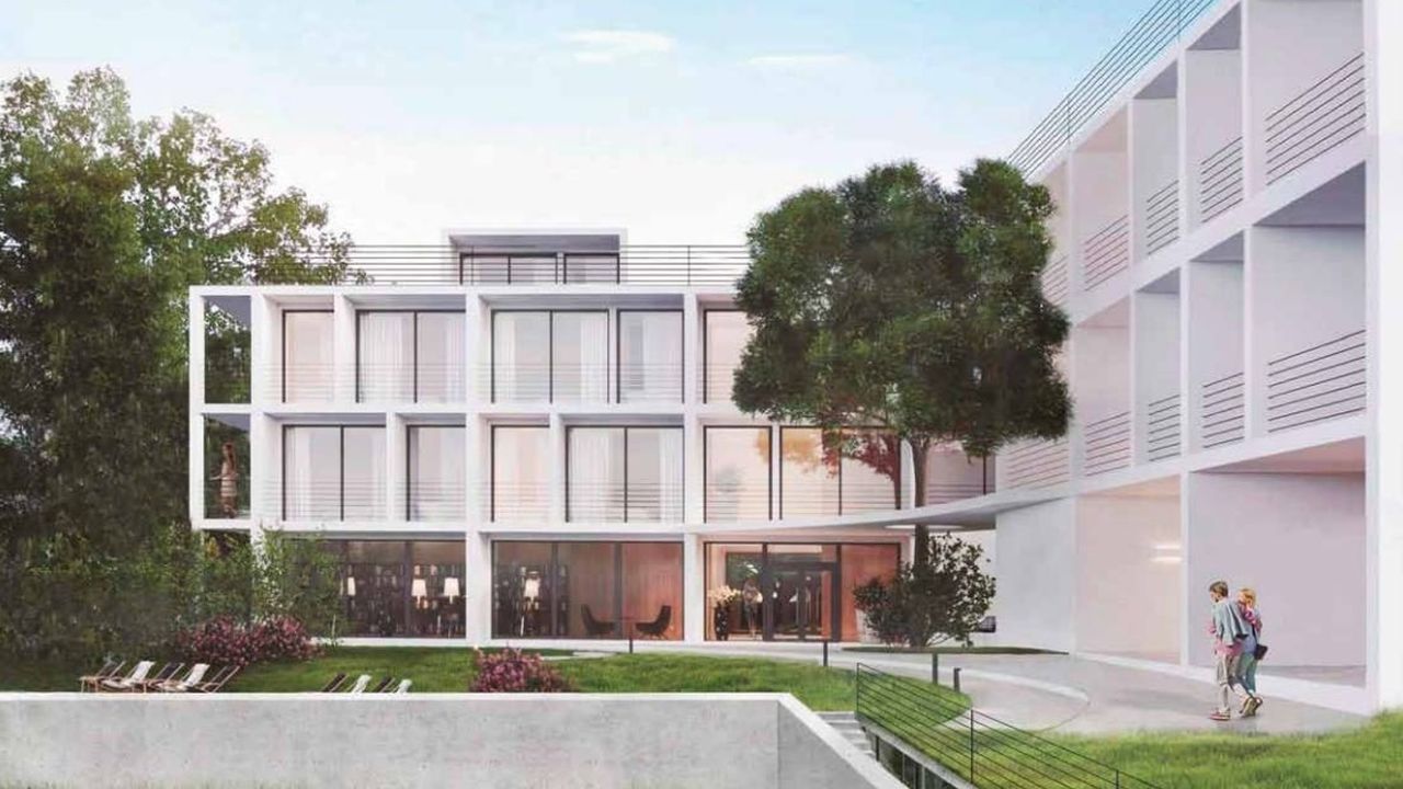 Имеются первые эскизы апарт отеля на 38 номеров типа люкс с террасой, ванной и не большой американской кухней.