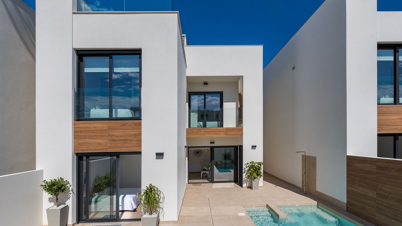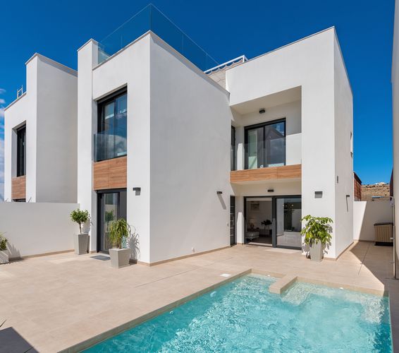 ВСЕ ВКЛЮЧЕНО! Residencial Benimar расположен в городе Бенихофар, в самом роскошном районе этого района, с великолепным видом на природу. Виллы в современном стиле. Гостиная, 3 спальни, две из них с ванными комнатами, открытой кухни, 3 ванных комнаты. Частный участок с террасой, парковка, бассейн, сад в средиземноморском стиле и два солярия с великолепным видом.Привилегированный район Коста Бланка, в окружении всех услуг, в 20 минутах от аэропорта Аликанте, рядом с прекрасными пляжами Гуардамар и полями для гольфа. Расстояние до моря 7 км, до гольфа 1 км, до аэропорта 30 км.