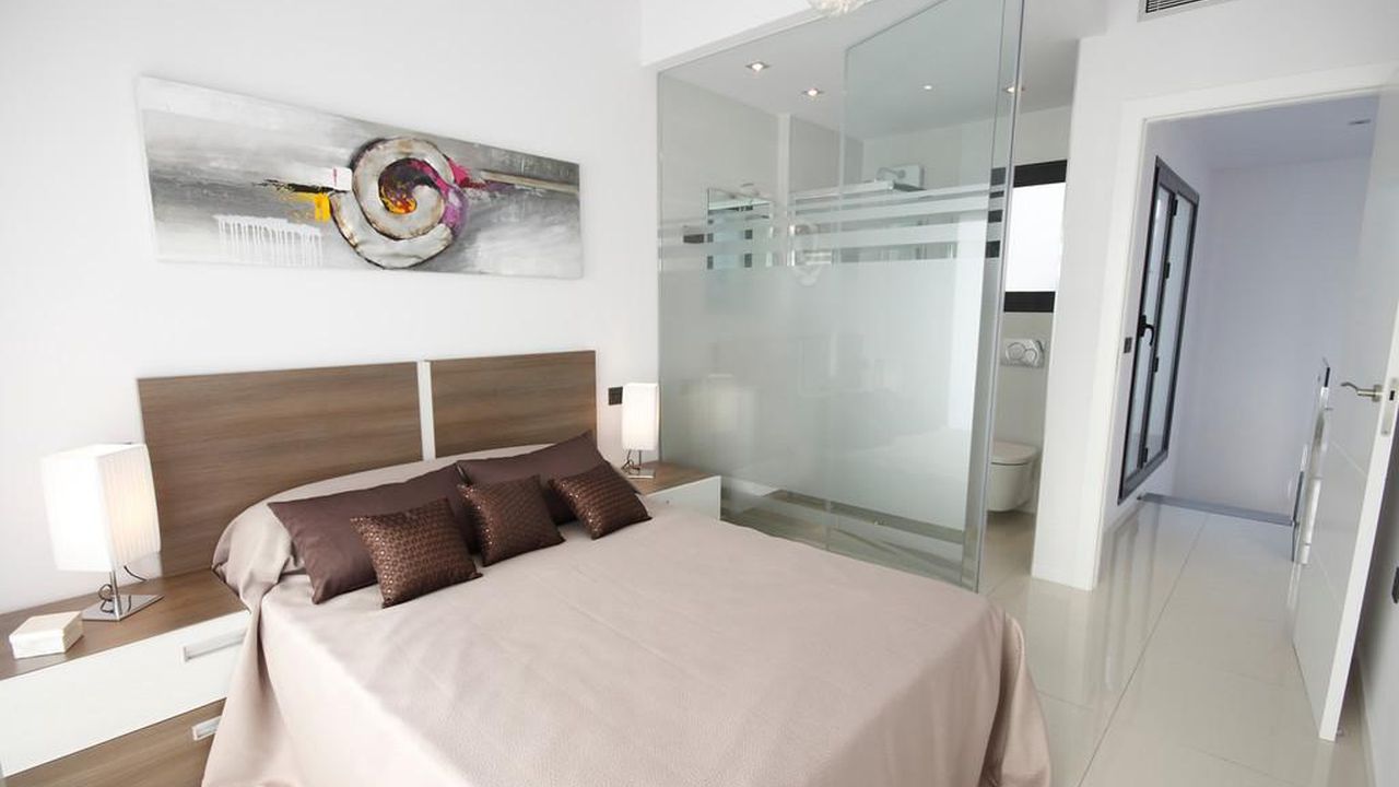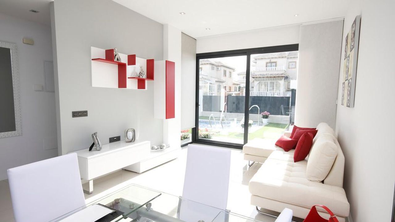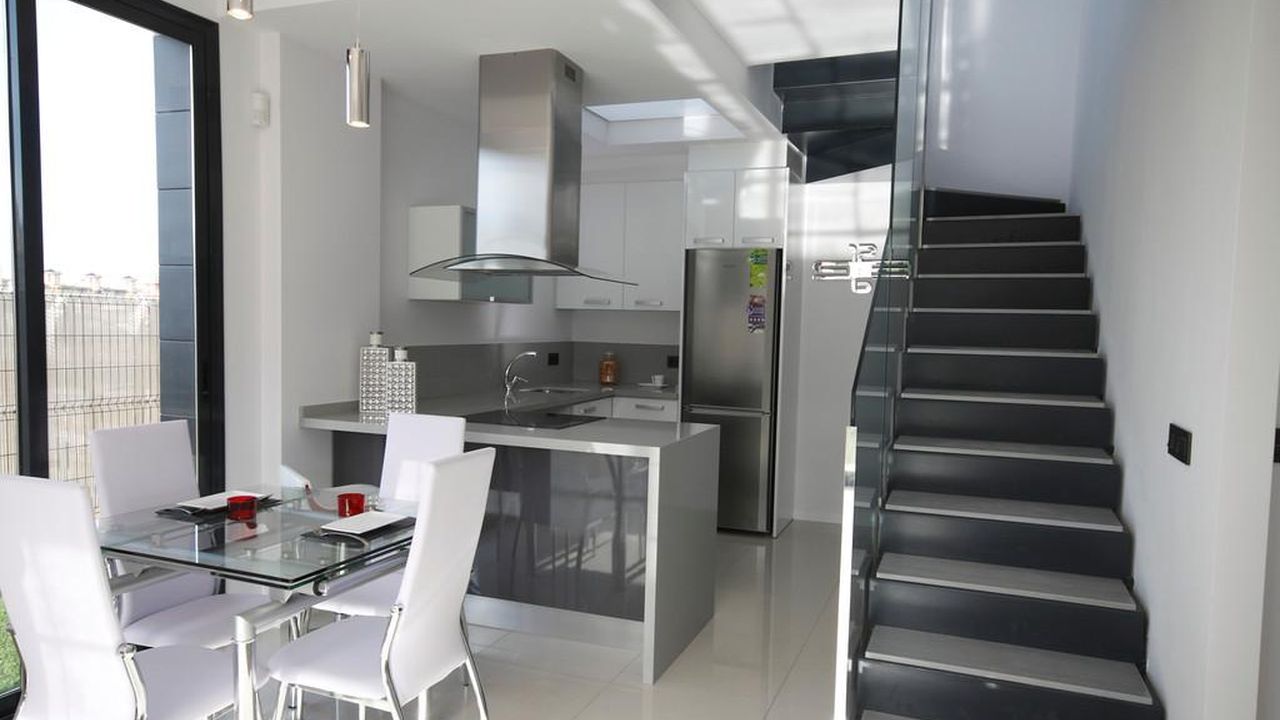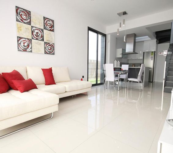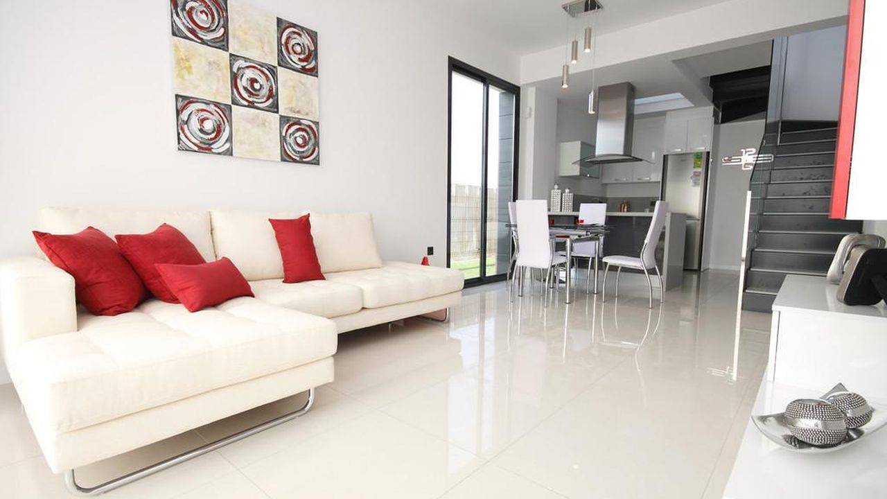 Дома построены из качественных материалов с первоклассной отделкой, площадь дома 105м2 + террасы, участок земли около 200м2. Дом состоит из салона с кухней, 3 спальни со встроенными шкафами, 3 ванные комнаты, несколько террас. На участке земли собственный бассейн. Расстояние до моря 2.5 км.