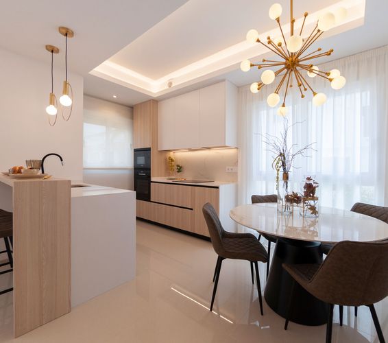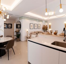 Площадь апартаментов составляет 84 м2, они состоят из просторной гостиной-столовой с полностью оборудованной кухней открытого плана, двух основных спален, одна из которых с ванной комнатой. Также имеется большой сад площадью 135 м2. Апартаменты находится в роскошном жилом комплексе с общим бассейном и садом, парковкой и частной кладовой.
