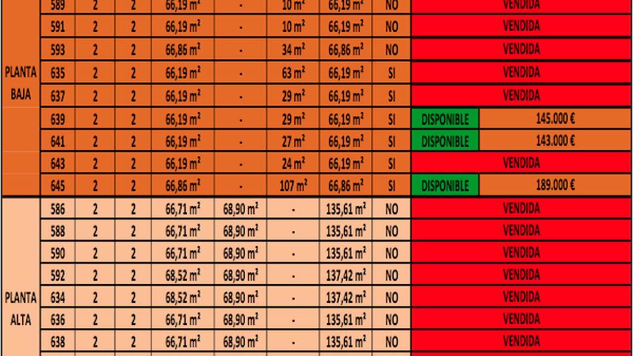 Площадь апартаментов 67 м2. Две спальни и две ванные комнаты. Площадь земельного участка от 27 м2 до 107м2. Есть последние апартаменты с солярием площадью 69м2.
