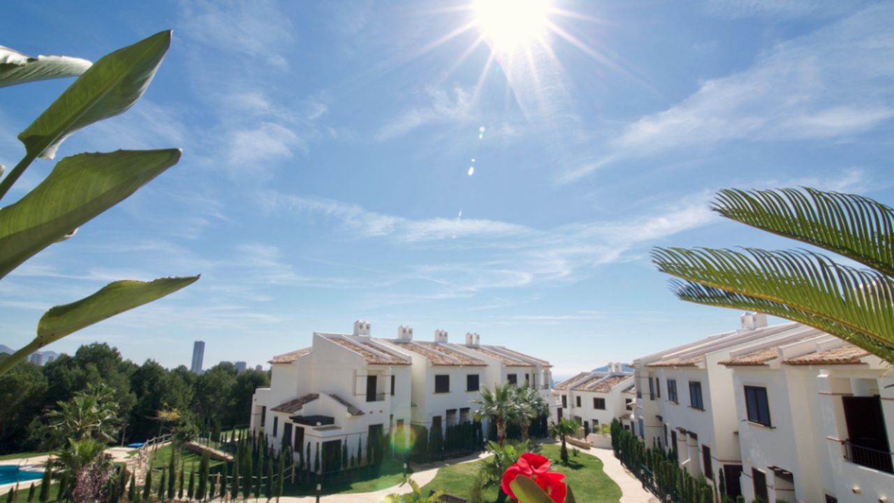 Новый таунхаус в урбанизации Саламандра с бассейном вблизи города Финестрат. Урбанизация состоит из 19 смежных домов окруженных зелеными садами. Общая площадь дома 135 м2, жилая площадь 119 м2, в доме имеются 3 спальни, 3 ванные комнаты, кухня, гостиная, крытая терраса 16 м2, отрытая веранда 30 м2 и собственный сад 65 м2. Дом оснащен центральной системой кондиционирования воздуха и сигнализацией. Кухня оснащена белой лакированной мебелью, столешницей из натурального камня и бытовой техникой марки Siemens. Все используемые отделочные материалы от ведущих мировых брендов. В спальнях установлены встроенные шкафы, в главной спальне имеется собственная ванная комната, что придает уединенность. В стоимость дома включено парковочное место. Рядом расположен спортивный комплекс, гольф клуб, рестораны и кафе. Территория находится под круглосуточной охраной. Одним из достоинств расположения урбанизации является великолепный вид на море и город Бенидорм.