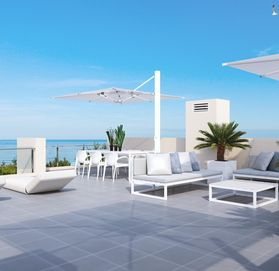 Квартиры на втором этаже имеют салон с большим балконом, две спальни и одну ванную комнату и выход на третий этаж к собственному солярию. Общая площадь 144 м2.