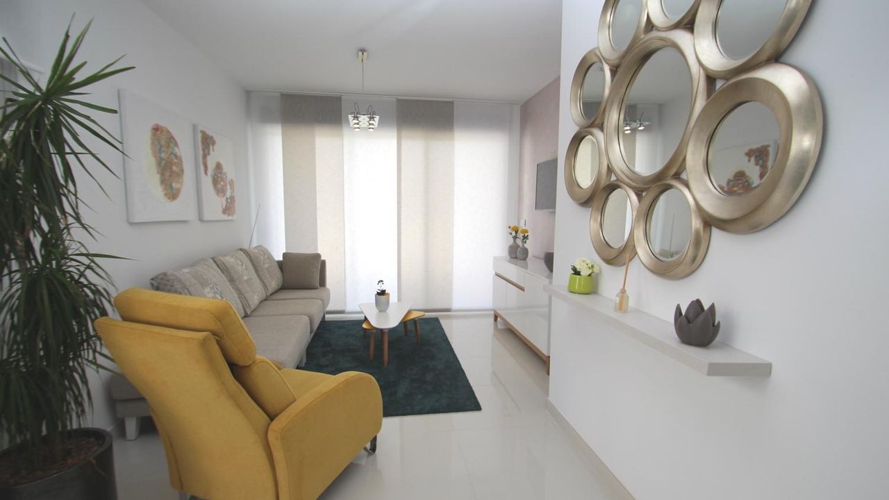 На каждом этаже площадь 63 м2: имеются 2 спальни, 2 ванные комнаты, меблированная кухня со встроенной бытовой техникой, просторная гостиная комната, встроенные шкафы, бронированная дверь, двойной стеклопакет, система кондиционирования, индивидуальный нагреватель на воду. Гараж в подземном паркинге и кладовая по желанию за дополнительную плату 10 000 евро.