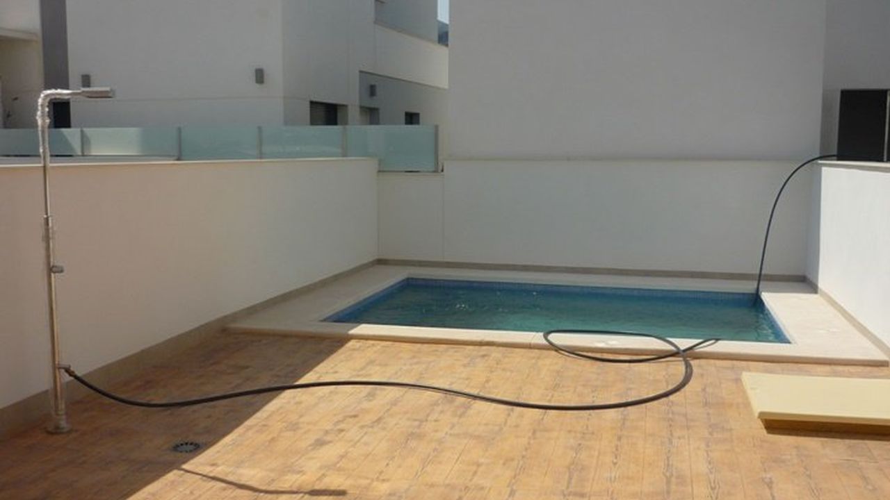 Салон, американская кухня, 3 спальни, 2 санузла, парковка и кладовая, терраса 19 м2. Частный бассейн, участок 150 м2.