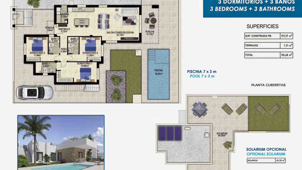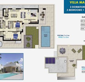 Расположенные на участке площадью от 351 м2, виллы модели Marina Baja предлагают жилую площадь 137 м2, спланированную таким образом, чтобы максимально увеличить функциональность и удобство каждого помещения. Виллы выполнена в современном архитектурном стиле, отличается высококачественной отделкой и вниманием к деталям, создавая атмосферу роскошной и спокойной жизни.