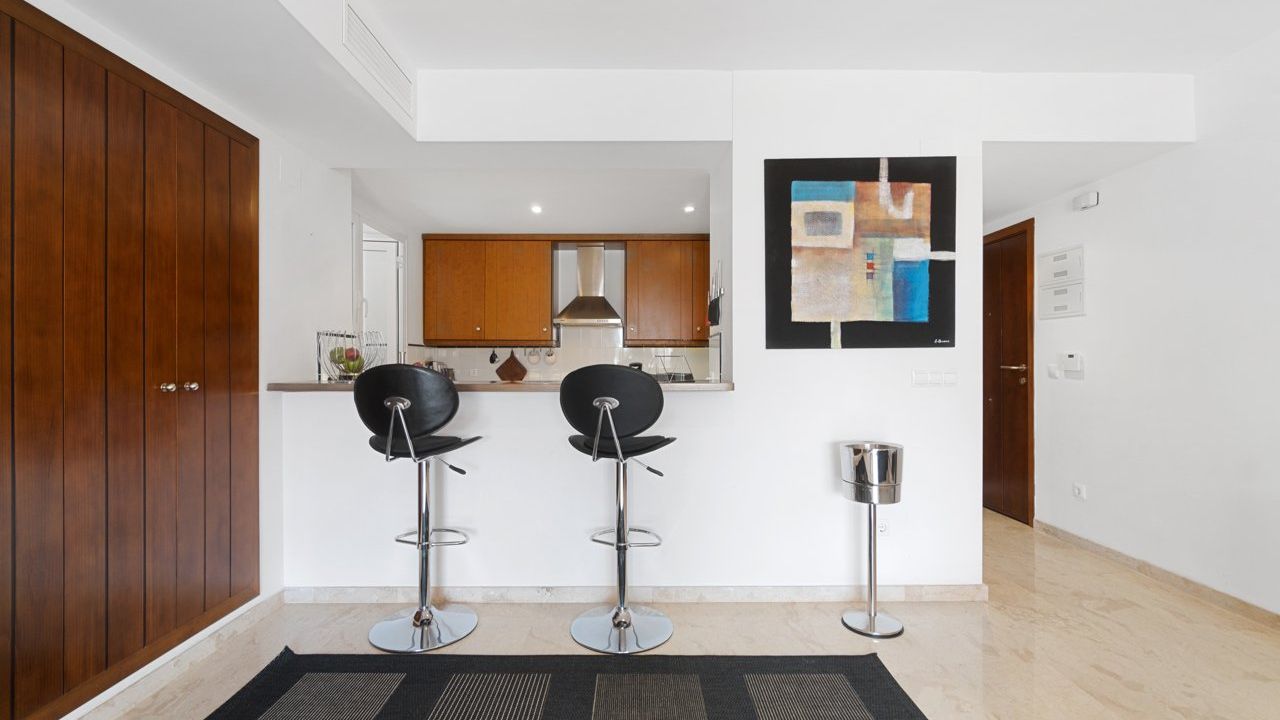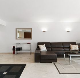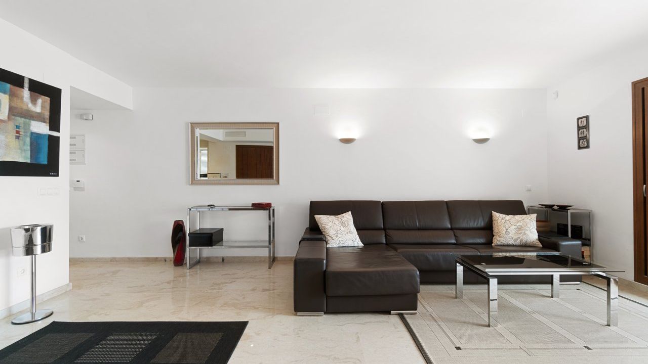 Большой салон, открытая кухня с галереей, 2 спальни со встроенными шкафами, 2 ванные комнаты, одна из которых ан-сьюит, терраса 16 м2, частный солярий 45 м2. Общая площадь 149 м2. Год постройки – 2009. Апартменты находятся на четвертом (по-русски – пятом) этаже.
