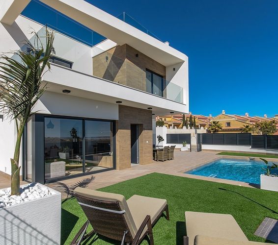 Современные, очень просторные и светлые виллы с частным садом, бассейн и большая солнечная терраса включены.