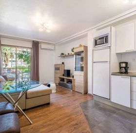 Апартамент у пляжа — это полностью отреформированная квартира с 2 спальнями, просторным холлом с раскладным диваном (на 2 человека) с выходом на небольшую террасу, кухней открытого типа и ванной комнатой. В 1 спальне имеется большая двухспальная кровать, большой шкаф, 2 прикроватных тумбочки и комод. Из этой спальни есть выход в патио.