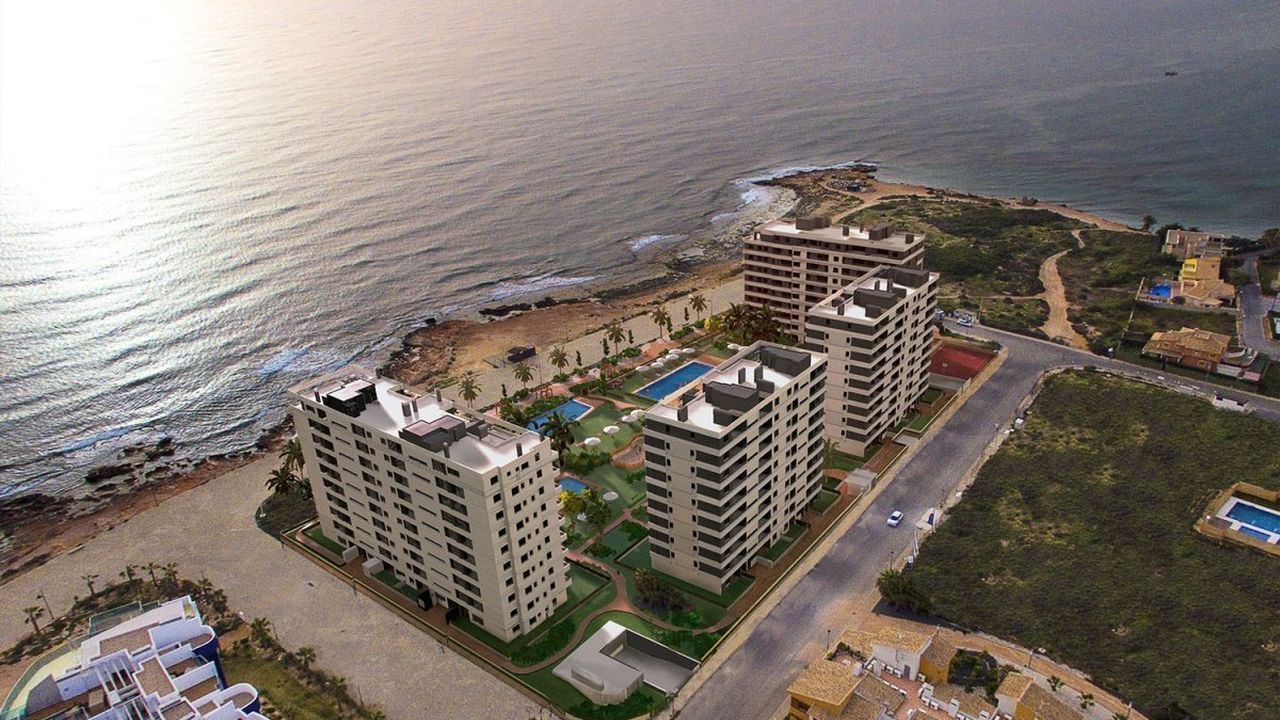 Район состоит из апартаментов с 2 и 3 спальнями и 2 ванными комнатами, все с большими террасами и потрясающим видом на южное Средиземноморье и пляж Пунта Прима. Дома спроектированы для максимального комфорта, отдыха и характеризуются постоянным высоким качеством. Для всех домов есть гараж и кладовая.Территория огорожена и надежно огорожена для безопасности жителей. Есть большие сады и объекты, где вы можете наслаждаться солнцем и видом на Средиземное море. В общественных местах есть три бассейна, в том числе пейзажный бассейн и джакузи. Для детей есть отдельный бассейн и игровая площадка. Из жилого района есть прямой доступ к очаровательной набережной.Всего в 10 км от домов вы найдете поля для гольфа, такие как Вильямартин, Лас Рамблас, Кампоамор, Лас Колинас и Ло Ромеро; все с 18 отверстиями. Здесь вы также можете найти торговые центры, такие как La Zenia и Habaneras.