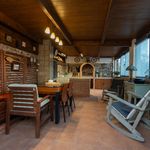 - Первый этаж (185 м2): прихожая, 1 ванная комната с душем, гостиная-столовая с каминной зоной, кухня-столовая, прачечная, оборудованная стиральной машиной и сушилкой. Кроме того, есть жилое пространство площадью 40 м2 с отдельным входом (студия), включающее зону спальни, зону кухни, гостиную и отдельную ванную комнату.