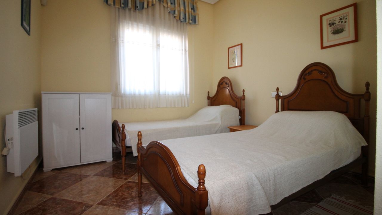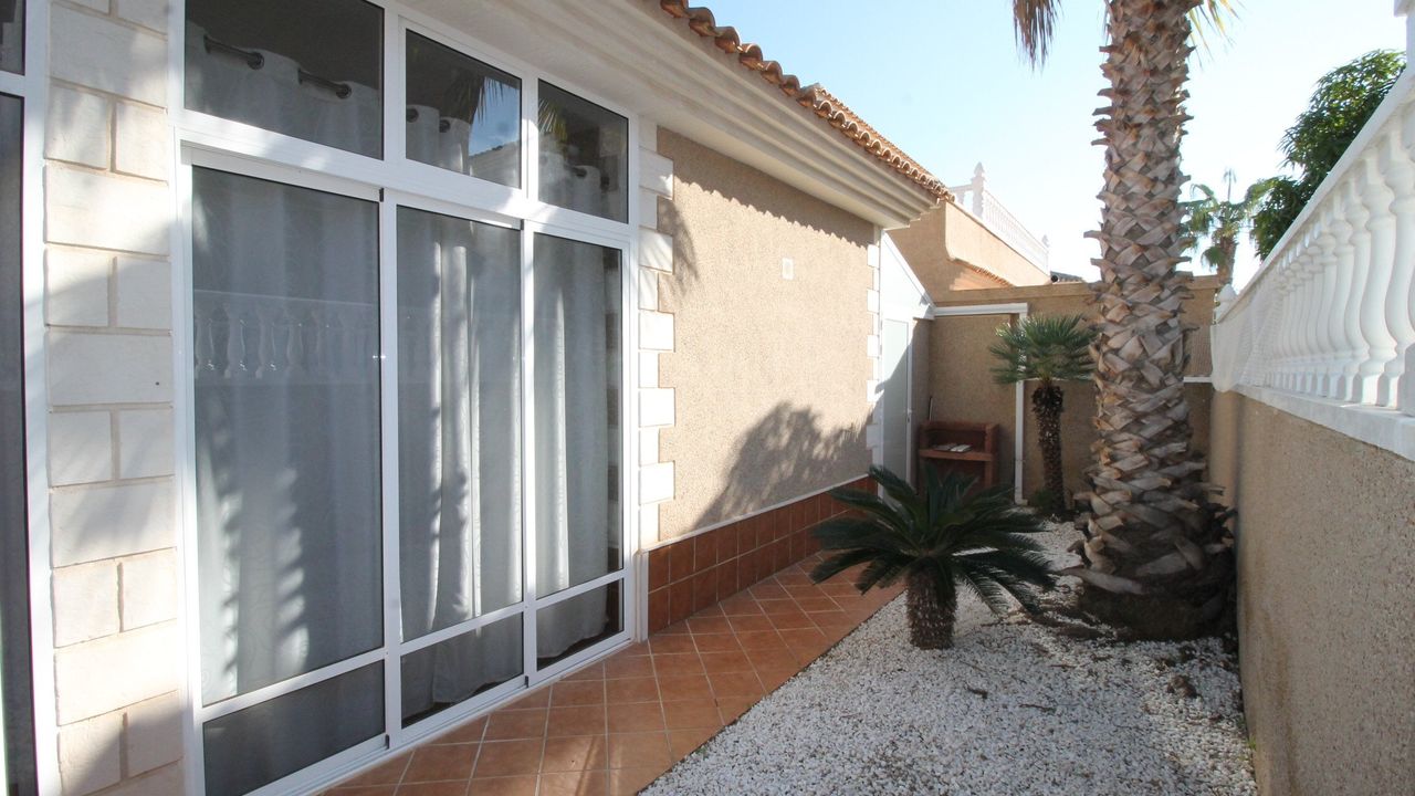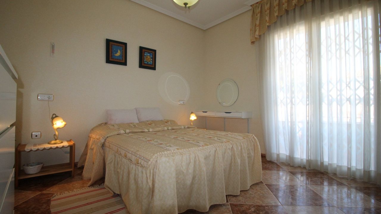 Independent Villa in the private urbanization Los Huertos II (Los Altos/Torrevieja/Alicante), consists of 3 bedrooms, one of them on the ground floor, 2 bathrooms, living room with large windows, independent kitchen with large gallery, barbecue, two terraces. Plot of 400 m2 with private parking. The house is in excellent condition, does not require repair, is sold with appliances and furniture. The house has satellite TV and high-speed Internet. All with views to the southeast, community pool, all services next door, shops, pharmacy, school, hospital and everything you need for daily life
